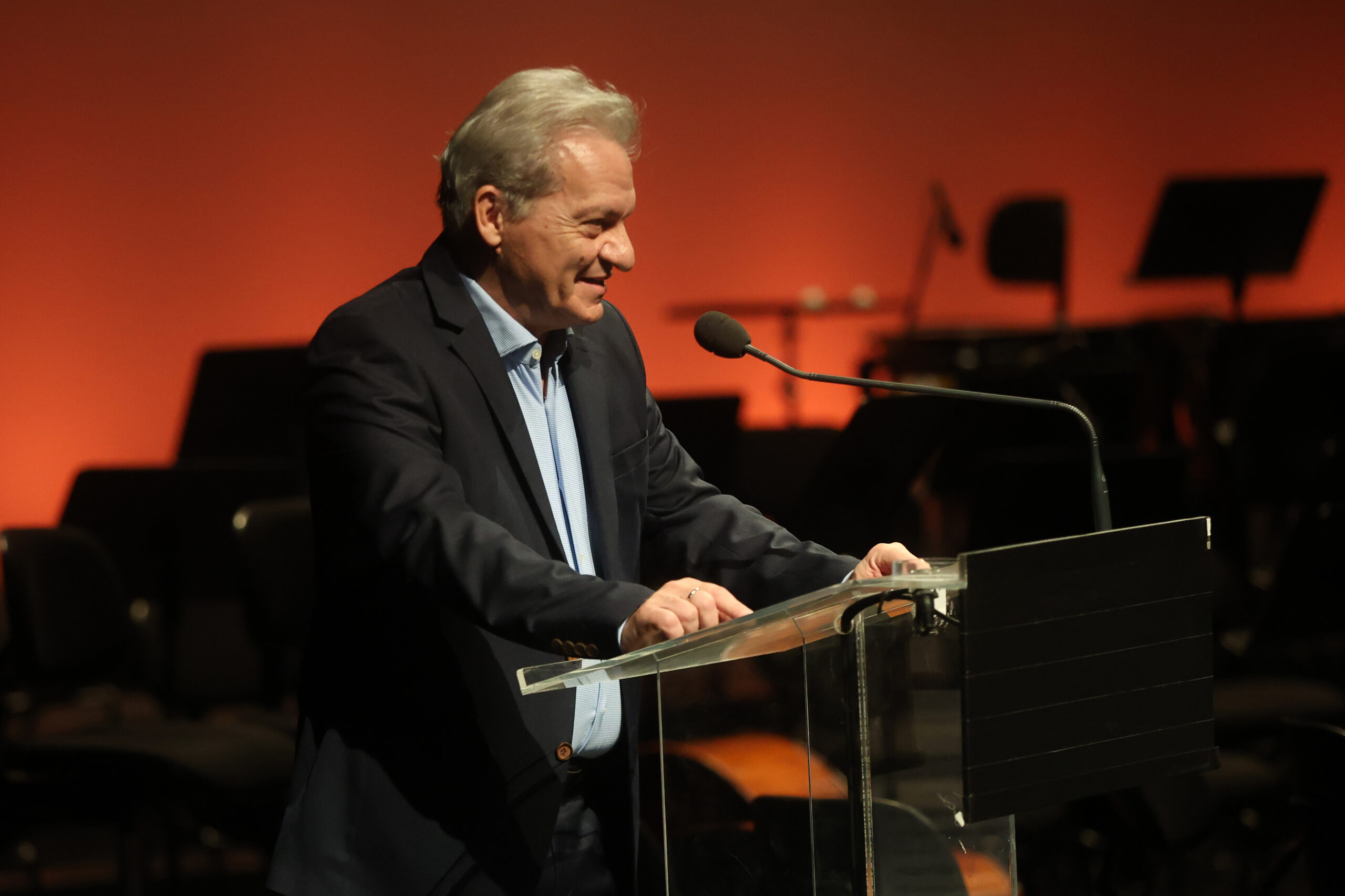 Στον χαιρετισμό του, ο Δήμαρχος Ηρακλείου Αλέξης Καλοκαιρινός έκανε μια σύντομη αναφορά στον εμπνευστή του θεσμού της Ορχήστρας Νέων, τον Jose Antonio Abreu που το 1975 ίδρυσε στη Βενεζουέλα το El Sistema, το οποίο επισήμως είναι γνωστό ως Ίδρυμα για το Εθνικό Δίκτυο Ορχηστρών Παιδιών και Νέων της Βενεζουέλας. Το εμβληματικό αυτό εγχείρημα εξαπλώθηκε σε όλο τον κόσμο χαρίζοντας στα παιδιά τη μεταμορφωτική δύναμη της μουσικής όπως δήλωσε ο Αλέξης Καλοκαιρινός: «Και το εγχείρημα του Abreu, και το εγχείρημα της Συμφωνικής Ορχήστρας Νέων Κρήτης του Δήμου Ηρακλείου, δείχνουν τους πολλούς δρόμους από τους οποίους οι νέοι μπορούν να βαδίσουν στη μουσική και τη μεταμορφωτική δύναμη που έχει αυτό το εγχείρημα της εκπαίδευσης και της μουσικής πράξης. Από το 2015 με την πρωτοβουλία του τότε Προέδρου της ΔΗΚΕΗ Γιώργου Τσαγκαράκη, στη Δημαρχία του Βασίλη Λαμπρινού, που τον καλωσορίζω απόψε εδώ, δημιουργείται αυτή η Ορχήστρα του Δήμου Ηρακλείου που είναι όλης της Κρήτης. Το εγχείρημα στα δέκα χρόνια που έχουν διανυθεί, αποδεικνύεται εξαιρετικά καρποφόρο και πολύ επιτυχημένο και φαίνεται ότι μπορεί να αποδώσει ακόμα πολλά. Και αυτό δημιουργεί ασφαλώς μια υποχρέωση επιπλέον στο δημιουργό του, δηλαδή στον Δήμο Ηρακλείου. Αυτή η πορεία θα συναρτηθεί, όπως εξαρχής, με την απόδοση του Δημοτικού μας Ωδείου. Και από αυτό το εγχείρημα, γνωρίζετε ότι έχουν βγει σχήματα όπως το Νέο Κρητικό Κουαρτέτο του Γιώργου Δεμερτζή που διαπρέπει στην Ευρώπη, στους 34 του διαγωνισμού της MERITA, και έρχονται νεότερα για ακόμα μεγαλύτερες διακρίσεις σε ολόκληρη την Ευρώπη».