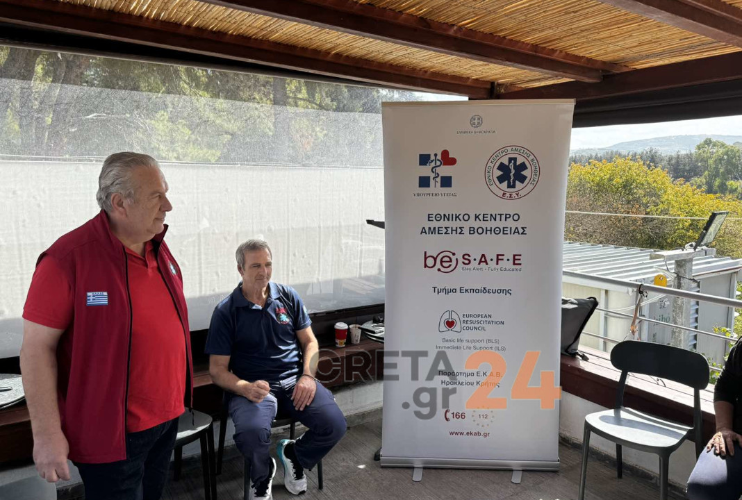 «Σήμερα η εκδήλωση έχει διπλό χαρακτήρα, γίνεται ένα σεμινάριο και ευχαριστούμε πάρα πολύ το ΕΚΑΒ που είναι μαζί μας, ενώ παράλληλα τιμούμε και τον συνάδερφο Νίκο Παπαδάκη που συνταξιοδοτείται», ανέφερε το μέλος του Δ.Σ. του Πανελληνίου Συλλόγου Υπαλλήλων Φύλαξης Αρχαιοτήτων, Μανώλης Αποστολάκης.