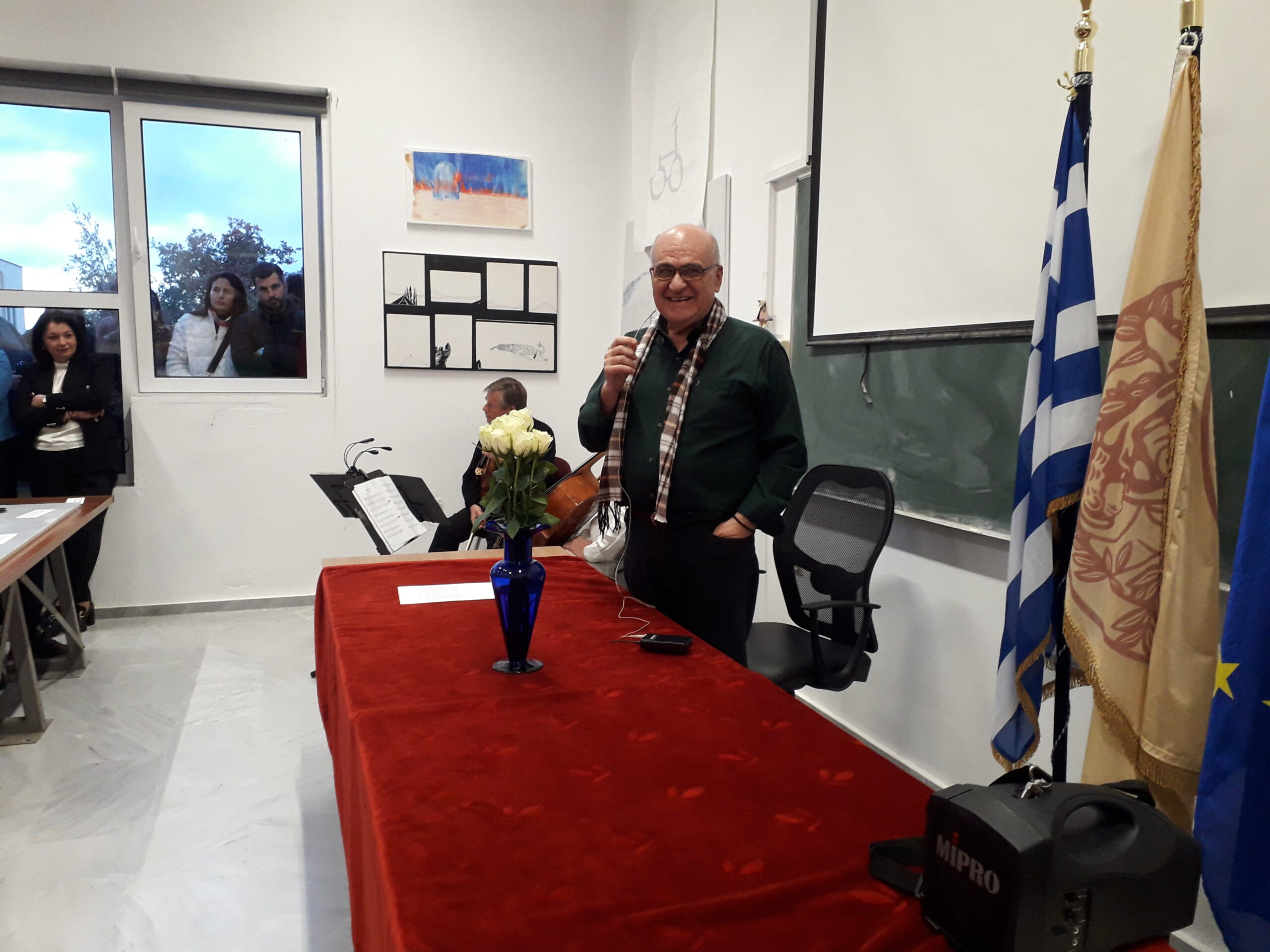 Στην κατάμεστη αίθουσα των Καλλιτεχνικών Μαθημάτων του Π.Τ.Π.Ε. ‘Αντώνιος Τσουπάκης’ παραβρέθηκαν πάρα πολλοί συνάδελφοι του τμήματος μας, αλλά και άλλων τμημάτων, φοιτητές, συγγενείς, και πολλοί φίλοι του ιδίου, από όλη την Κρήτη, την Αθήνα και το εξωτερικό, με σκοπό να τιμήσουν τον Δάσκαλο, τον Καλλιτέχνη, τον Άνθρωπο Αντώνιο Τσουπάκη, δημιουργώντας μια ατμόσφαιρα έντονης χαρμολύπης.