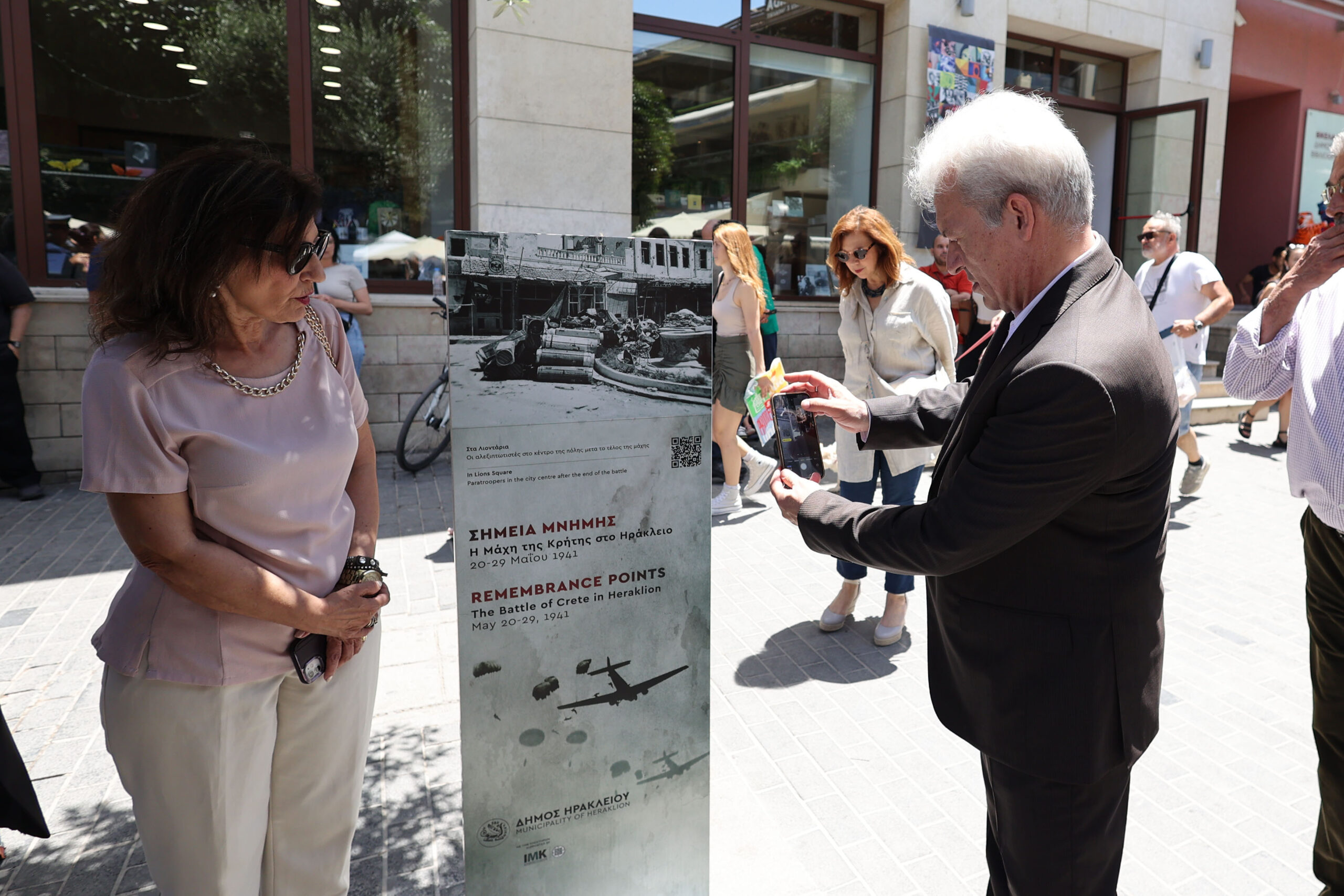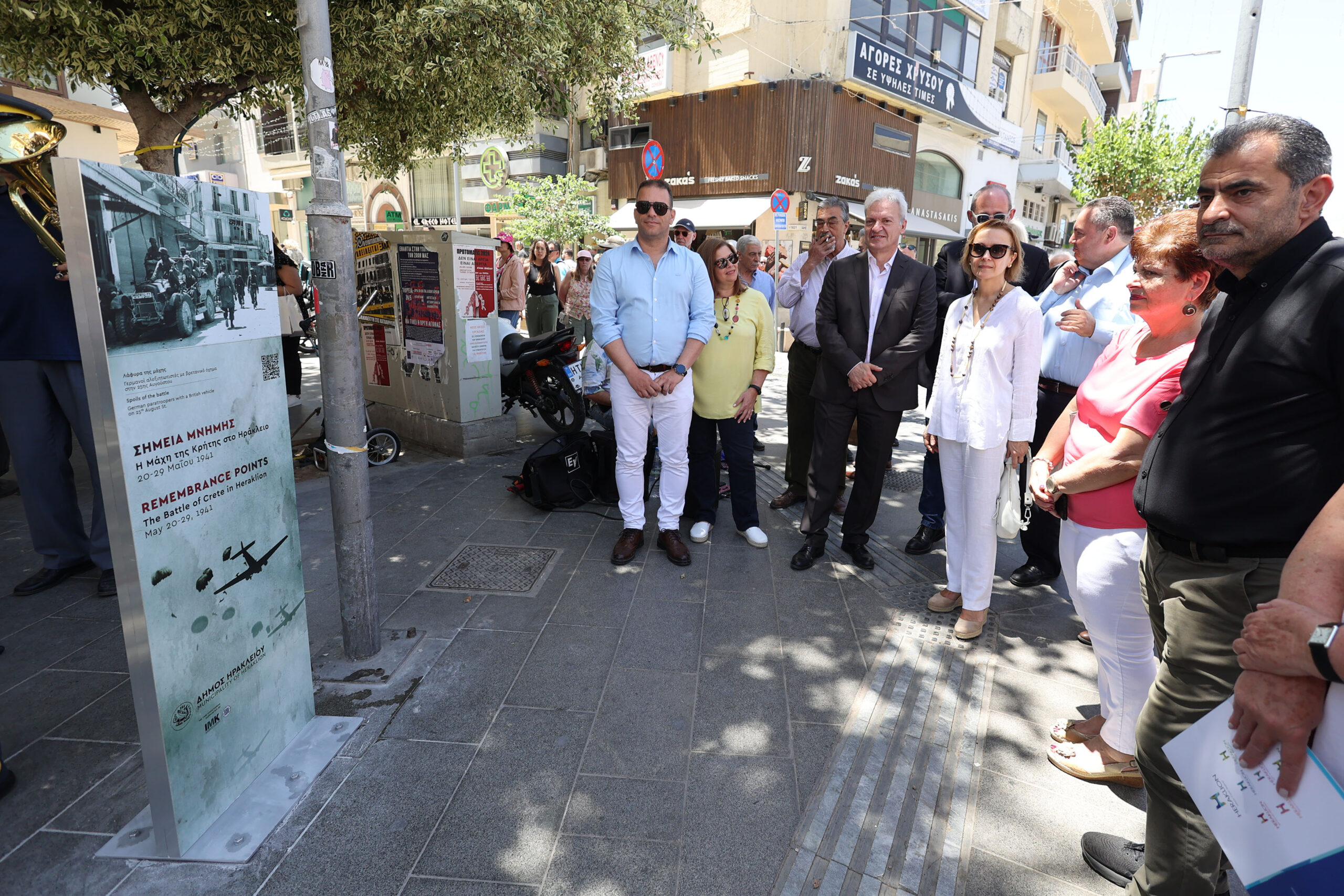 Μέσα σε κλίμα συγκίνησης, παρουσία πλήθους κόσμου και με τη συμμετοχή της Φιλαρμονικής του Δήμου Ηρακλείου έγινε το μεσημέρι του Σαββάτου η επίσημη παρουσίαση από το Δήμαρχο Αλέξη Καλοκαιρινό των «Σημείων Μνήμης», των ενημερωτικών επιγραφών για την Μάχη του Ηρακλείου (20-29 Μαΐου 1941), που τοποθετήθηκαν για πρώτη φορά και έπειτα από πρωτοβουλία του, σε έξι ιστορικά σημεία της πόλης, στα οποία διαδραματίστηκαν σημαντικά γεγονότα της Μάχης.
