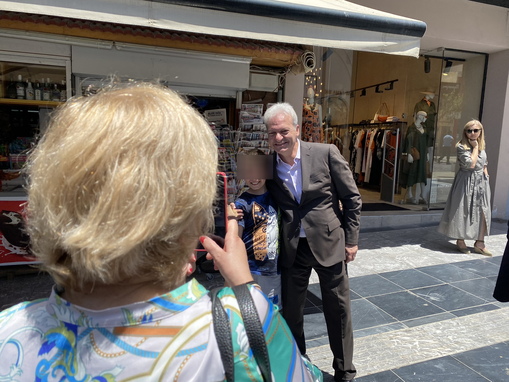 Ο Αλέξης Καλοκαιρινός συνοδευόμενος από τη σύζυγό του Άση Λυγερού, άφησε λίγα λουλούδια στο μνημείο – προτομή του Ήρωα Ταγματάρχη Τζουλάκη που έπεσε μαχόμενος τους εισβολείς και αναφέρθηκε αναλυτικά στις μάχες που έλαβαν χώρα στην πόλη.