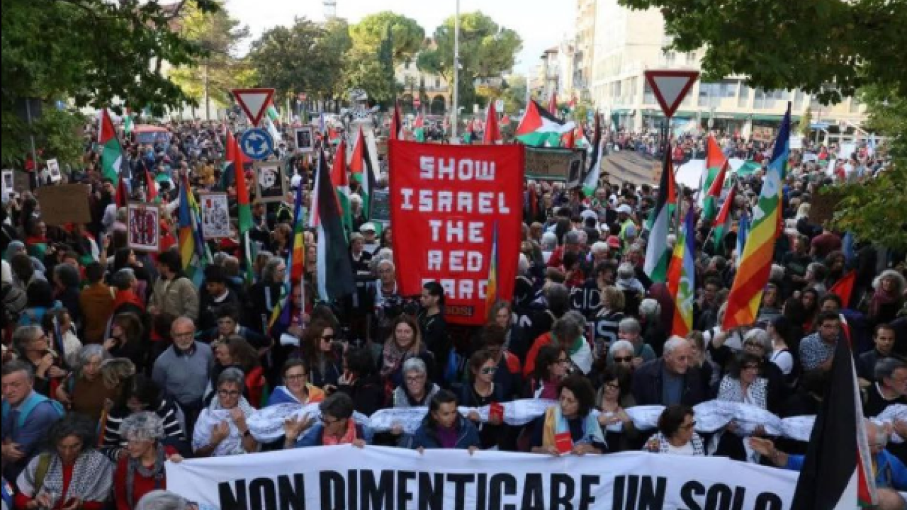 🇮🇹 Thousands protested Israel ahead of Italy–Israel World Cup qualifier in Udine, chanting “Free Palestine” and carrying signs reading “Show Israel the red card”