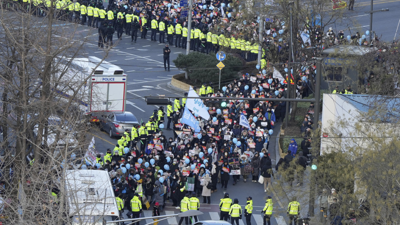 Εκατοντάδες πιστοί υποστηρικτές του Γιουν, μεταξύ αυτών ακροδεξιοί αστέρες του ΥouTube και ευαγγελικοί ηγέτες, συγκεντρώθηκαν μπροστά από την οικία του στη Σεούλ, έχοντας απέναντί τους διαδηλωτές κατά του Γιουν και τις μονάδες αντιμετώπισης ταραχών της αστυνομίας.