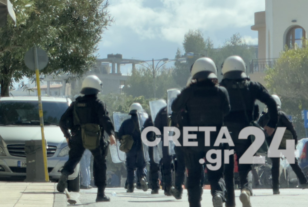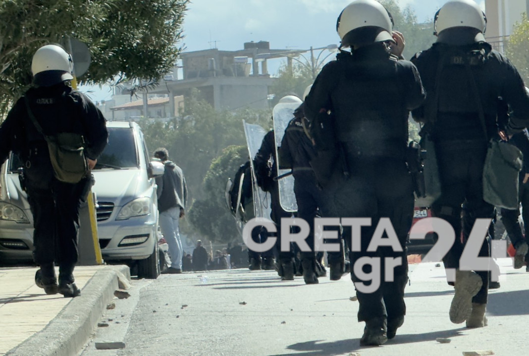 Άγνωστοι με καλυμμένα χαρακτηριστικά επιτέθηκαν σε άνδρες των ΜΑΤ πετώντας τους πέτρες στην Δουκός Μποφώρ, ενώ σκηνικό έντασης σημειώθηκε μπροστά από το Αρχαιολογικό Μουσείο Ηρακλείου και το κτήριο της Περιφέρειας Κρήτης.