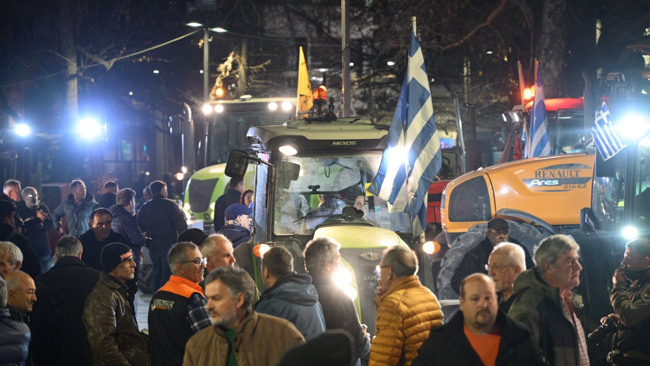 Το απόγευμα της Παρασκευής, δεκάδες αγρότες συγκεντρώθηκαν στο κέντρο της Λάρισας με τα τρακτέρ τους, προερχόμενοι από το αγροτικό μπλόκο της Γυρτώνης.