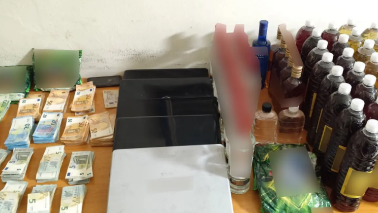 Μετά από έρευνα, βρέθηκαν επιμελώς κρυμμένα σε διάφορα σημεία του καταστήματος: 180 συσκευασίες καπνού που δεν έφεραν την ενδεικτική ταινία φόρου κατανάλωσης, το χρηματικό ποσό των -22.140- ευρώ και 46 οινοπνευματώδη ποτά, που δεν είχαν παραστατικά αγοράς.