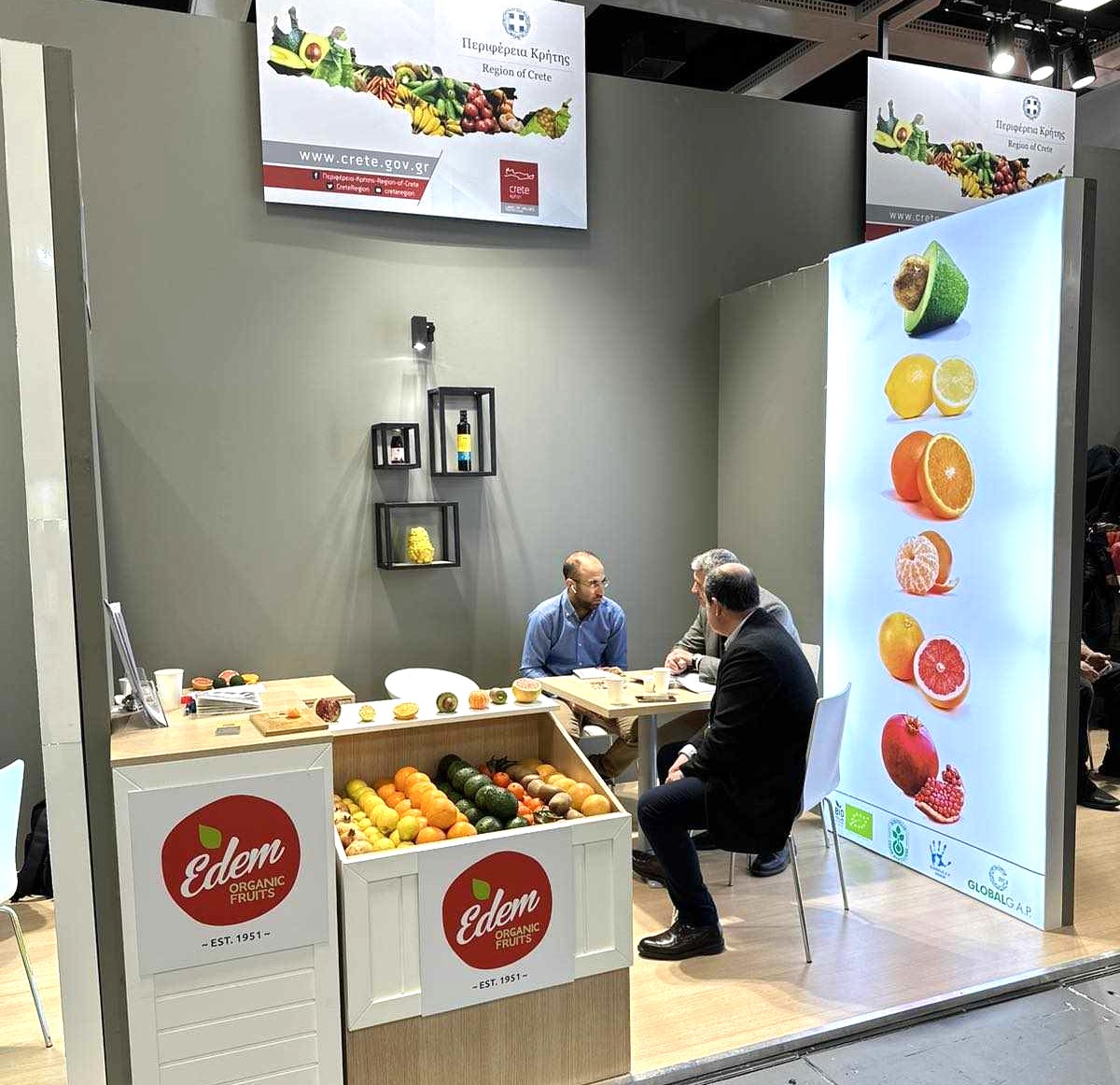 Στο πλαίσιο της στρατηγικής εξωστρέφειας, η Περιφέρεια Κρήτης συμμετείχε για άλλη μια χρονιά στην Fruit Logistica 2024, την κορυφαία εμπορική έκθεση στη βιομηχανία φρέσκων φρούτων και λαχανικών με την πιο άμεση πρόσβαση στην παγκόσμια αγορά. Στην έκθεση, που πραγματοποιήθηκε στο Βερολίνο, η Περιφέρεια Κρήτης φιλοξένησε στο περίπτερό της επιχειρήσεις του κλάδου από όλη την Κρήτη, δίνοντας τη δυνατότητα να προβάλουν και να προωθήσουν τα εξαιρετικής ποιότητας φρέσκα προϊόντα που παράγουν.