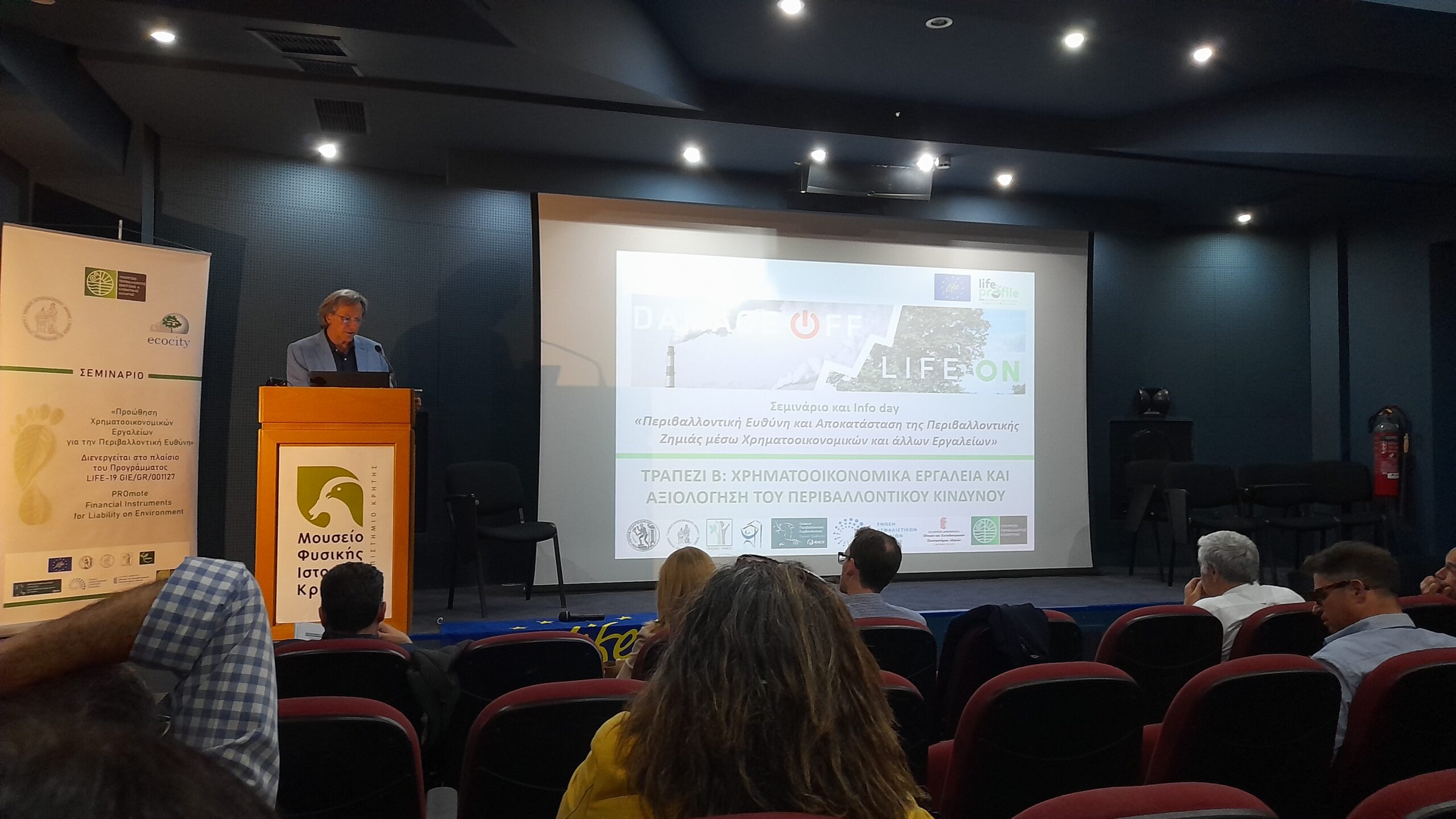 Στο σεμινάριο του έργου «LIFE PROFILE» με θέμα την «περιβαλλοντική ευθύνη και αποκατάσταση της περιβαλλοντικής ζημιάς μέσω χρηματοοικονομικών και άλλων εργαλείων», στο Μουσείο Φυσικής Ιστορίας Κρήτης, συμμετείχε ο Αντιπεριφερειάρχης Περιβάλλοντος Νίκος Ξυλούρης και στελέχη της Διεύθυνσης Περιβάλλοντος και Χωρικού Σχεδιασμού της Περιφέρειας Κρήτης.