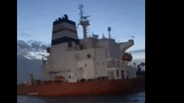 Εικόνες του πλοίου που αναρτήθηκαν στο διαδίκτυο το δείχνουν με την πρύμνη πολύ χαμηλά στη στάθμη του νερού, γεγονός που μπορεί να υποδηλώνει είτε πλήρες φορτίο είτε πλημμύρισμα. Το Reuters δεν έχει επιβεβαιώσει ανεξάρτητα τις εικόνες.