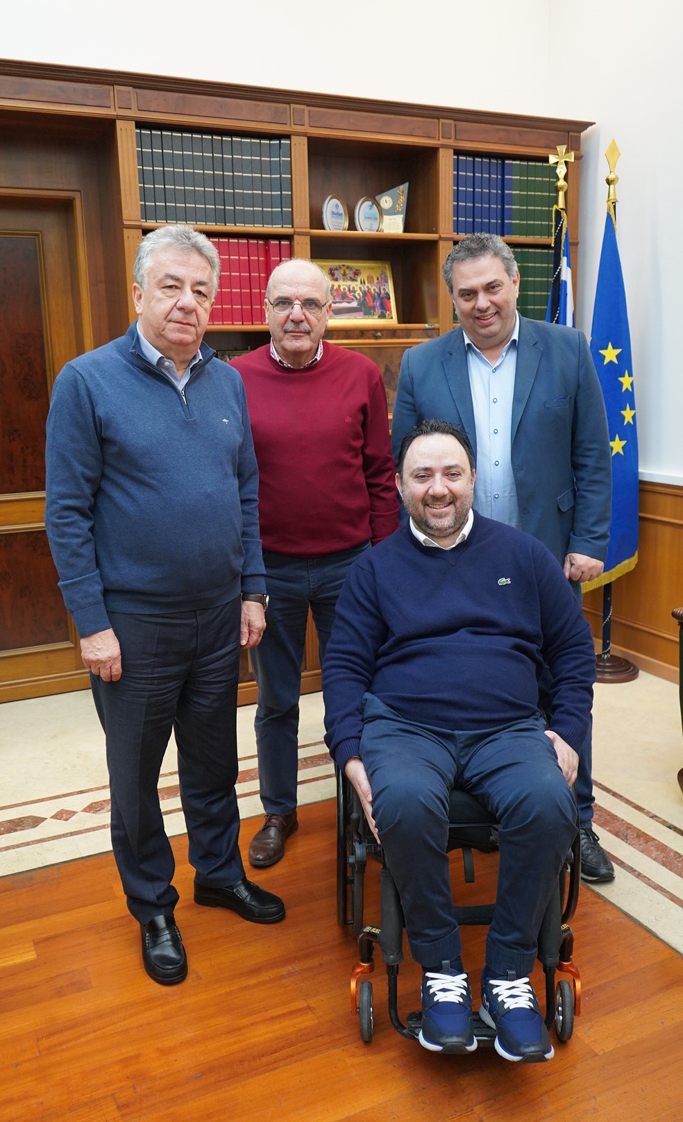 Τον Περιφερειάρχη Κρήτης Σταύρο Αρναουτάκη επισκέφθηκε σήμερα ο Πρόεδρος της Ελληνικής Παραολυμπιακής Επιτροπής Γιώργος Καπελάκης συνοδευόμενος από τον Γενικό Γραμματέα Χρήστο Τζαμούση.
