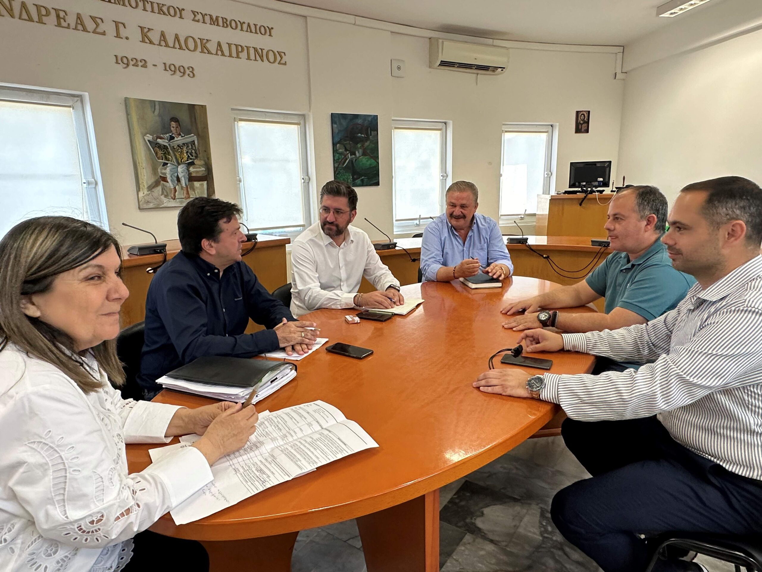 Στη συνάντηση συμμετείχαν οι Αντιδήμαρχοι Μαλεβιζίου Βαγγέλης Παρασύρης, Άρης Σαλούστρος και Γρηγόρης Φασουλάκης καθώς και η αν. διευθύντρια τεχνικών υπηρεσιών Π.Ε. Ηρακλείου Χαρά Τριαματάκη.