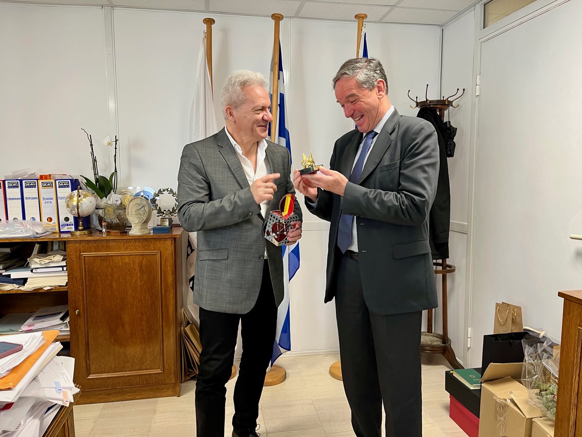 Εθιμοτυπική αλλά και ουσιαστική επίσκεψη στο Δήμαρχο Ηρακλείου Αλέξη Καλοκαιρινό πραγματοποίησε σήμερα ο Πρέσβης του Βελγίου στην Ελλάδα κ. Marc Calcoen.