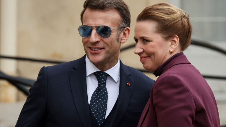Ο Εμανουέλ Μακρόν εξέφρασε εκ νέου πριν από το γεύμα εργασίας με τους Μέτε Φρέντερικσεν και Γενς Φρέντερικ Νίλσεν στο προεδρικό μέγαρο την αλληλεγγύη της Γαλλίας και την προσήλωσή της «στην κυριαρχία σας και την εδαφική σας ακεραιότητα».