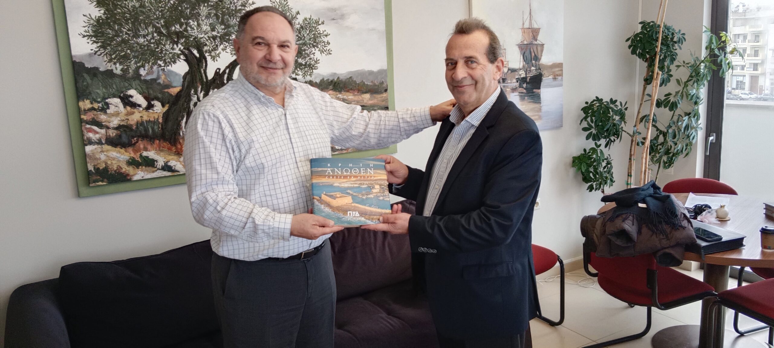 Ο κ. Κουράκης προσέφερε στον κ. Δοξαστάκη τη νέα έκδοση της Π.Ε.Δ. Κρήτης «ΚΡΗΤΗ ΑΝΩΘΕΝ».