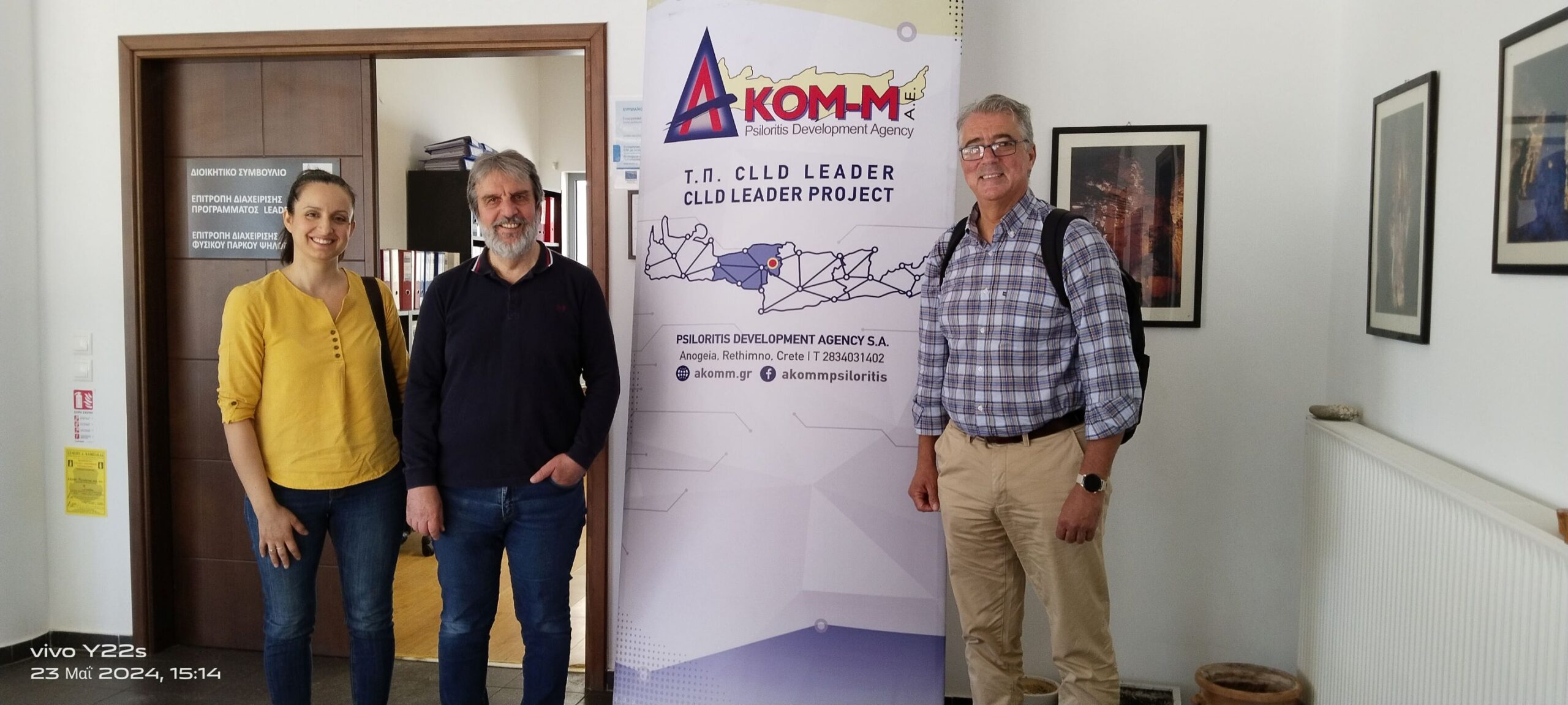 Στις συναντήσεις από την πλευρά της Περιφέρειας Κρήτης ήταν ο συντονιστής του έργου Αν. Προϊστάμενος Τμήματος ΔΒΜ, Παιδείας και Απασχόλησης της Δ/νσης Ανάπτυξης Π.Ε.Ρεθύμνης Χαράλαμπος – Νικόλαος Πίτερης και επιστημονική συνεργάτιδα του κα Κονδυλία Σκραπαλιώρη, Δασολόγος.