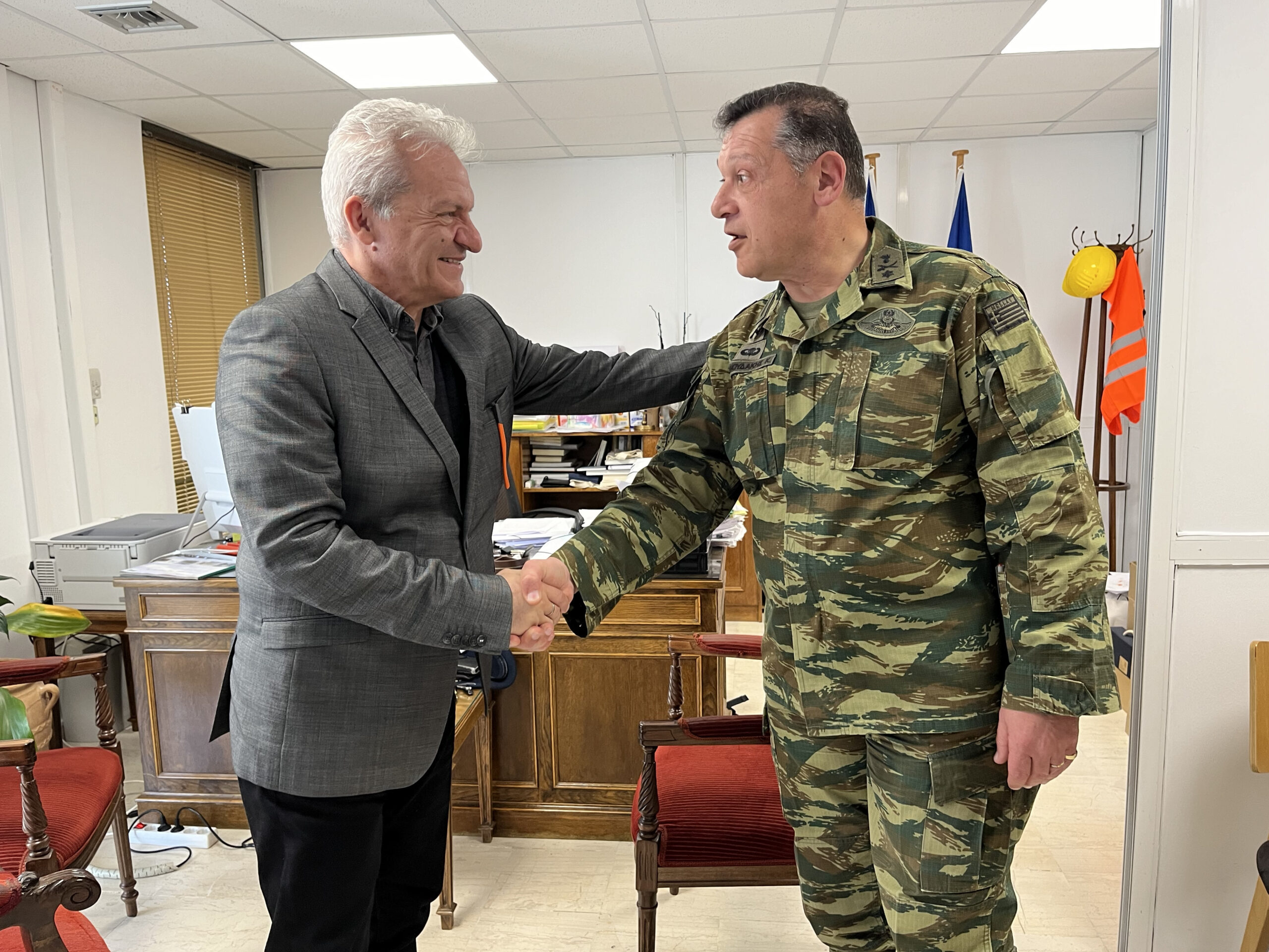 Σε πολύ καλό κλίμα πραγματοποιήθηκε η συνάντηση του Δημάρχου Ηρακλείου Αλέξη Καλοκαιρινού με τον νέο Διοικητή της Σχολής Εφέδρων Αξιωματικών Πεζικού στο Ηράκλειο Ταξίαρχο Κωνσταντίνο Σπανουδάκη το πρωί της Τετάρτης 27/3.
