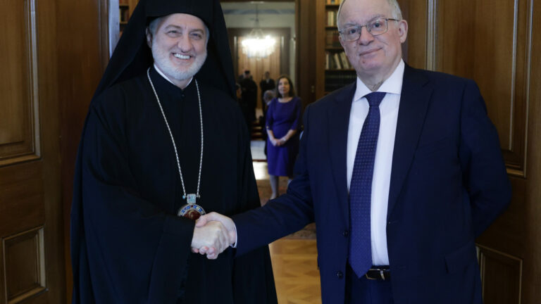 Ο Πρόεδρος της Δημοκρατίας Κωνσταντίνος Αν. Τασούλας δέχθηκε τον Αρχιεπίσκοπο Αμερικής Ελπιδοφόρο, ο οποίος ενημέρωσε τον κ. Τασούλα για την κατάσταση και την πορεία της Αρχιεπισκοπής Αμερικής, η οποία διαδραματίζει καίριο ρόλο στη διατήρηση της ταυτότητας και της συνεκτικότητας της ελληνικής διασποράς, καθώς αποτελεί ισχυρό συνδετικό κρίκο με την μητέρα πατρίδα.
