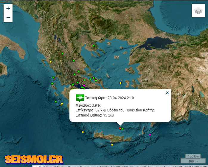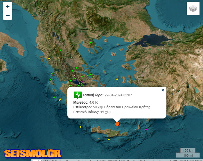 Λίγα λεπτά μετά τις 05:00 το πρωί της Μεγάλης Δευτέρας, οι Ηρακλειώτες ξύπνησαν με σεισμό 4.0 ρίχτερ, που σημειώθηκε 50 χιλιόμετρα βόρεια του Ηρακλείου.