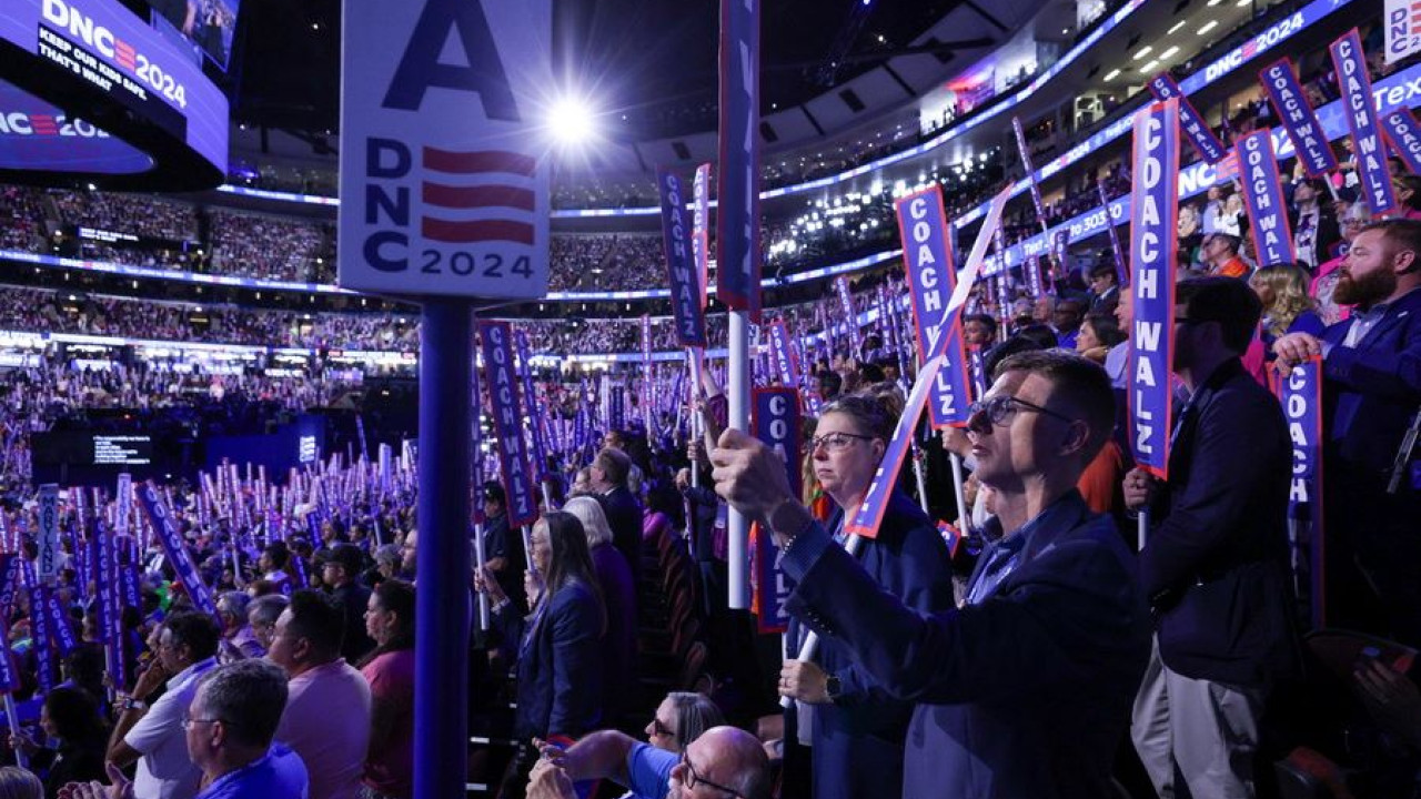 Κάτω από θερμά χειροκροτήματα και φωνές «ξαναφέρτε τους στο σπίτι», οι γονείς του Χιρς Γκόλντμπεργκ-Πόλιν, ενός 23χρονου Αμερικανοϊσραηλινού, ανέβηκαν στο βήμα του συνεδρίου στο Σικάγο, την πόλη από την οποία προέρχονται.