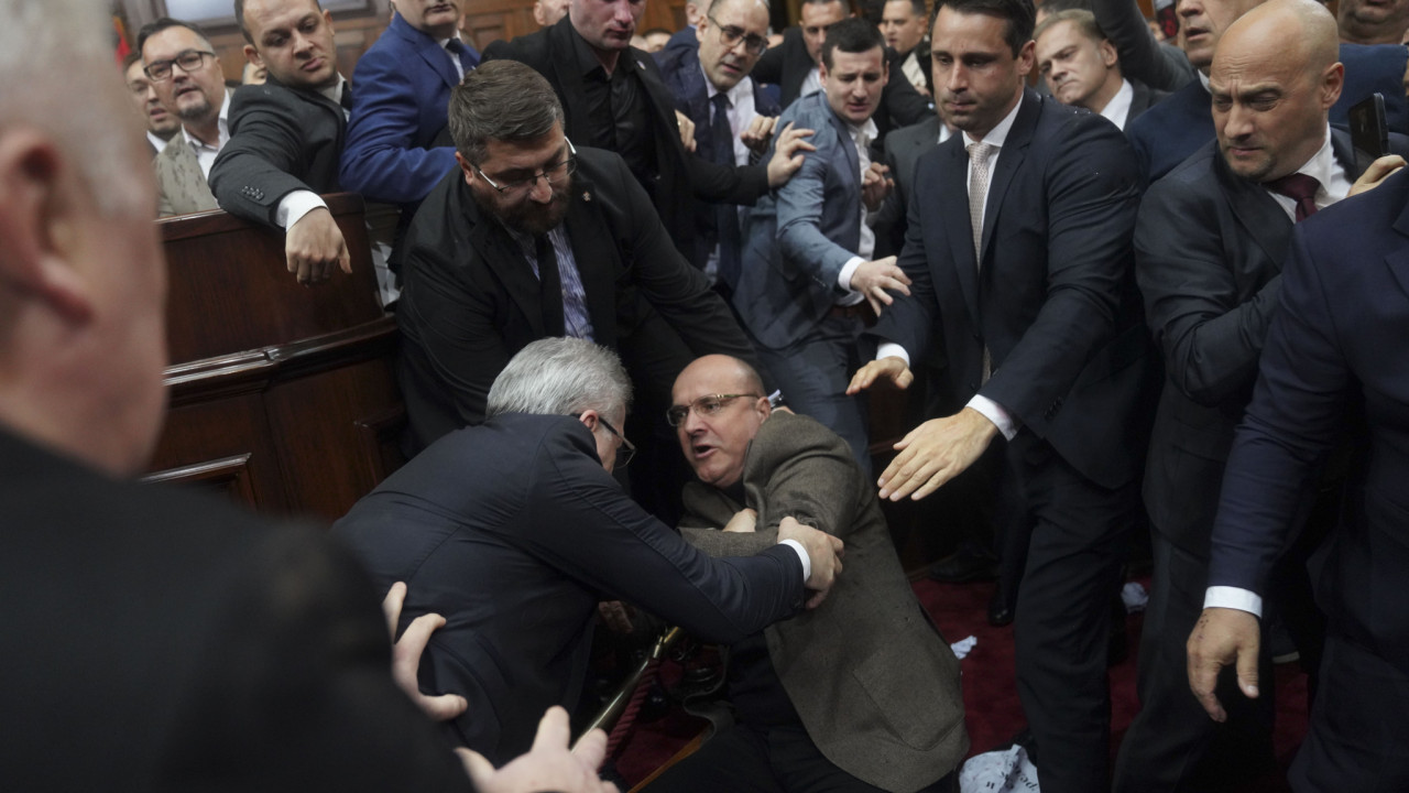 Σε ρινγκ μετατράπηκε η Bουλή της Σερβίας κατά τη διάρκεια της συζήτησης για τον προϋπολογισμό του 2025. Οι βουλευτές της αντιπολίτευσης με την έναρξη της συνεδρίασης σήκωσαν πλακάτ όπου απεικονίζονται ματωμένα χέρια ενώ φώναζαν «Δολοφόνοι, δολοφόνοι». Η αντιπολίτευση θεωρεί υπεύθυνη την κυβέρνηση για την κατάρρευση τμήματος της οροφής στον σιδηροδρομικό σταθμό του Νόβι Σαντ, την 1η Νοεμβρίου, όταν 15 άνθρωποι σκοτώθηκαν και δύο τραυματίστηκαν.