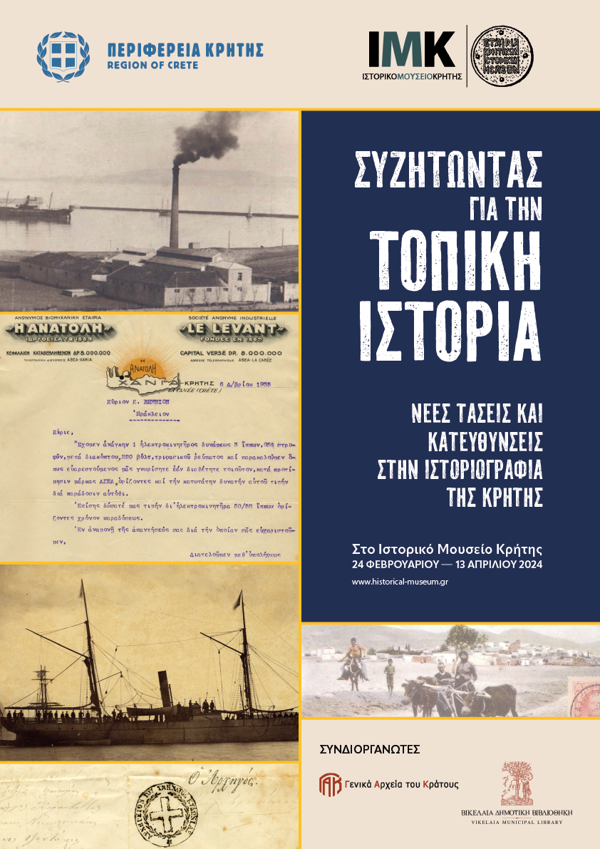 Με την τέταρτη κατά σειρά συνάντηση, το Σάββατο 23 Μαρτίου στις 11:00, στο Ιστορικό Μουσείο Κρήτης, συνεχίζονται οι παρουσιάσεις γύρω από την έρευνα για την τοπική ιστορία. Αντικείμενο της τέταρτης συνάντησης αποτελούν επιμέρους στοιχεία διαχείρισης της ιστορικής μνήμης.