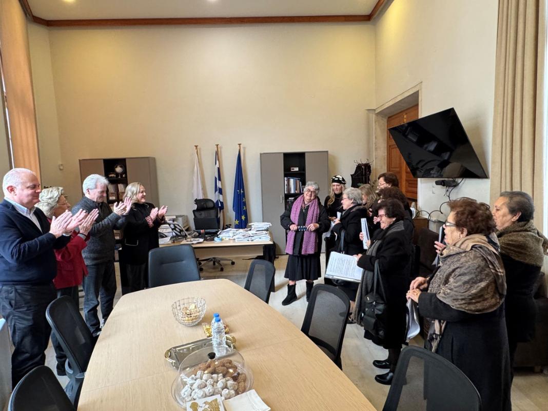Με πρωτοχρονιάτικες μικρασιάτικες μελωδίες πλημμύρισε η Λότζια από τα κάλαντα που έψαλαν στο Δήμαρχο Ηρακλείου Αλέξη Καλοκαιρινό ο Σύλλογος Αλατσατιανών και ο Πολιτιστικός Σύλλογος Φορτέτσας παρουσία του Αντιδημάρχου Οικονομικών & Ανάπτυξης της Τοπικής Οικονομίας Γιώργου Αγριμανάκη, της Αντιδημάρχου Διοίκησης και Προγραμματισμού Γιάννας Καλονάκη και της Γενικής Γραμματέως του Δήμου Μαρίας Σκραφνάκη.