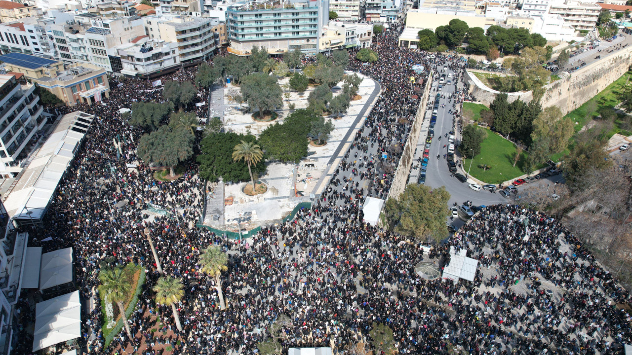 Ένταση και επεισόδια μικρής έκτασης, καταγράφονται στο Ηράκλειο μετά τη λήξη της συγκέντρωσης για τα δύο χρόνια από την τραγωδία στα Τέμπη.