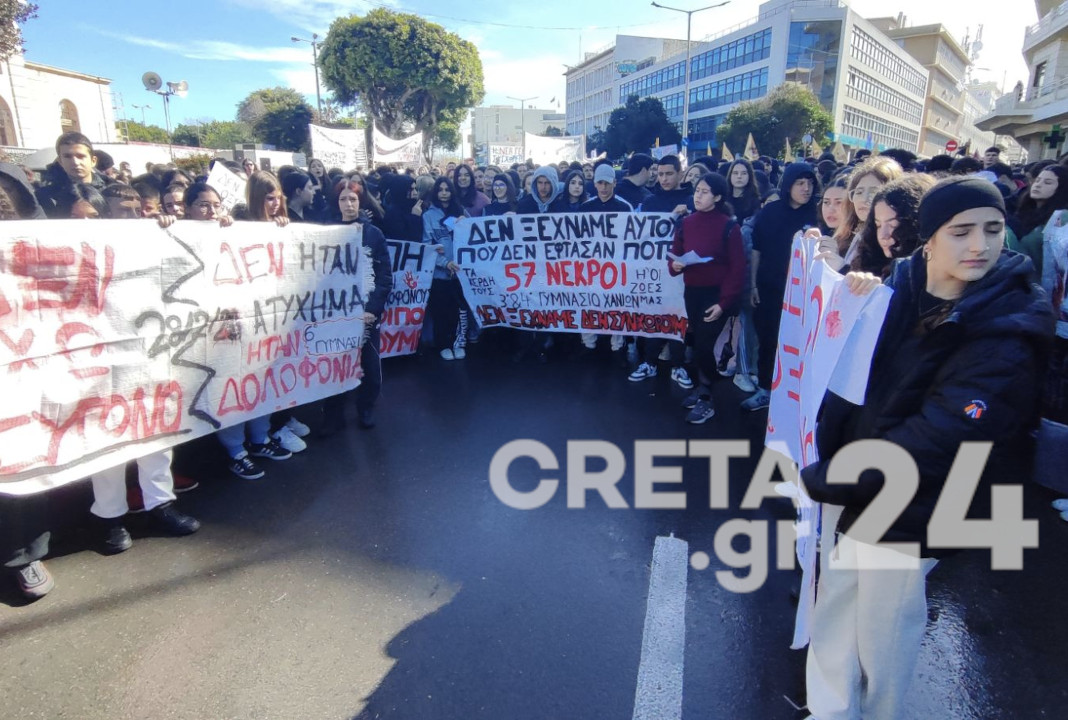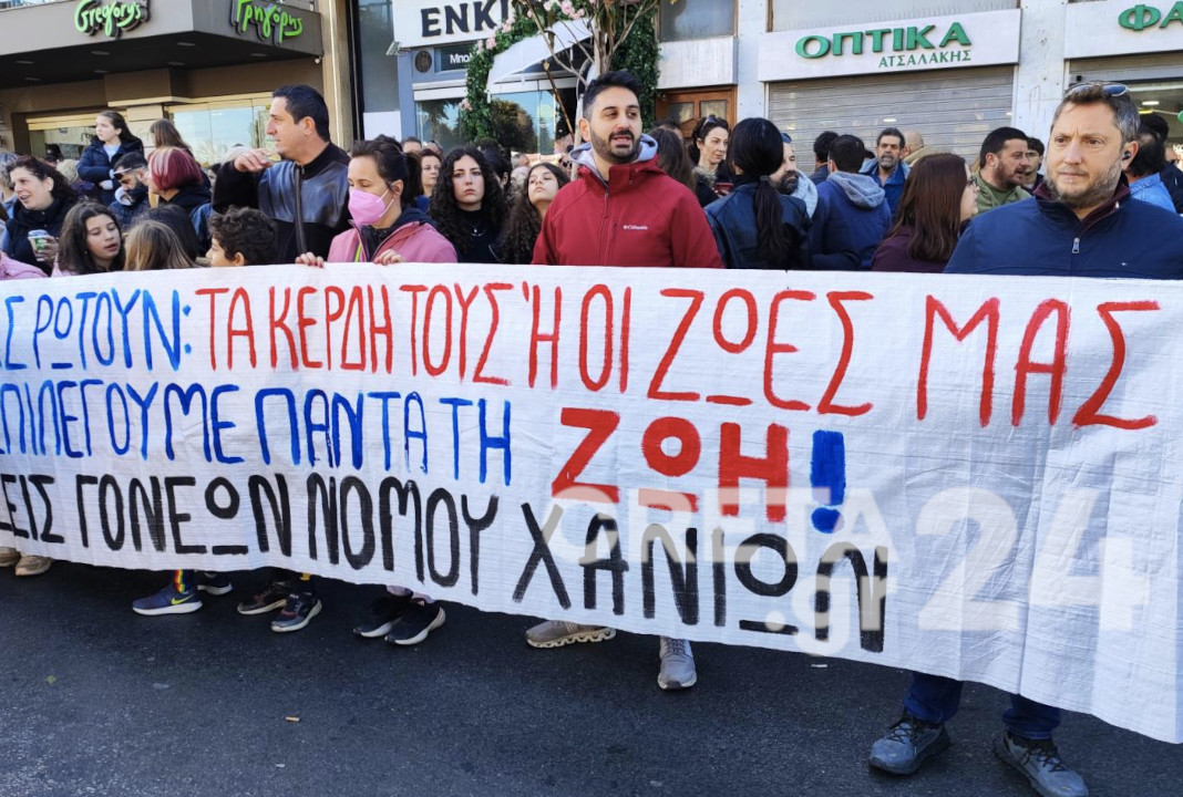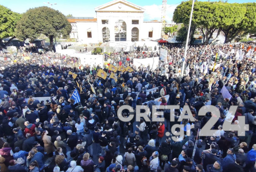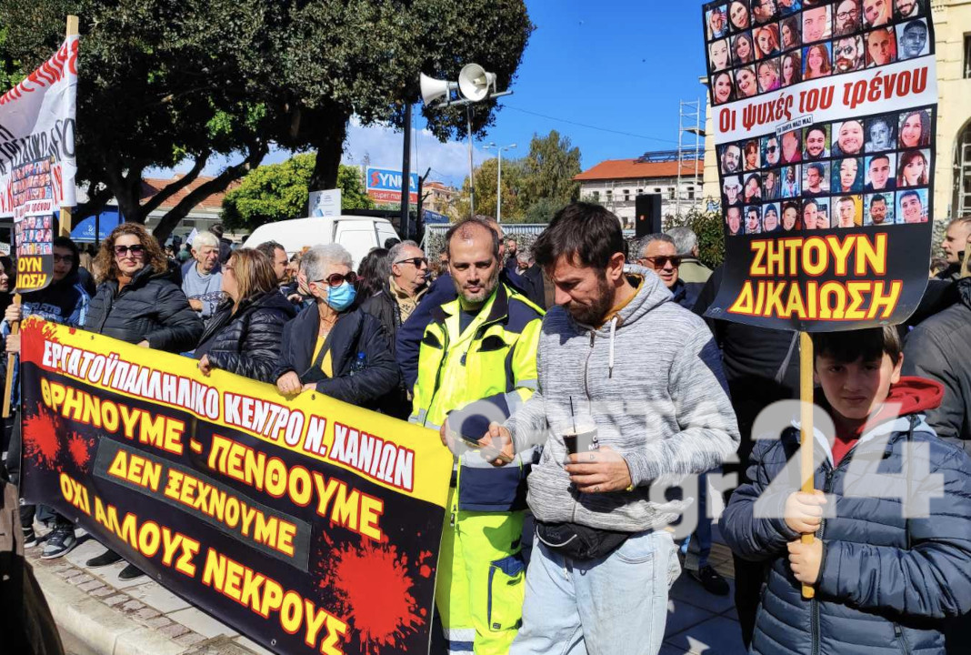 Χιλιάδες πολίτες συμμετέχουν στο συλλαλητήριο που πραγματοποιείται στα Χανιά για τα δύο χρόνια από την σιδηροδρομική τραγωδία στα Τέμπη.