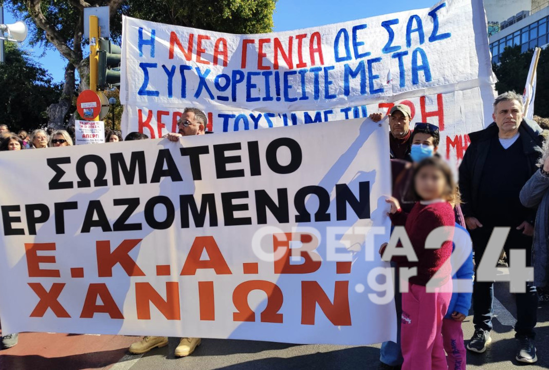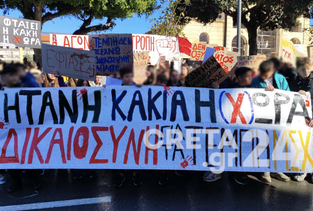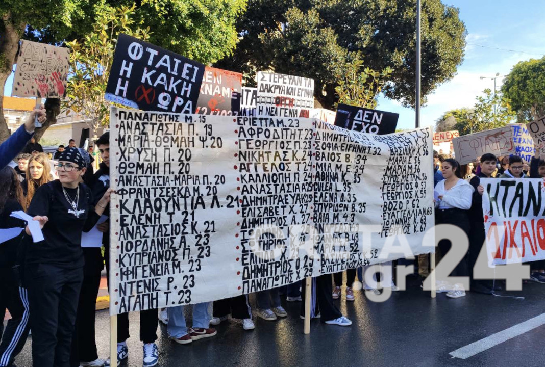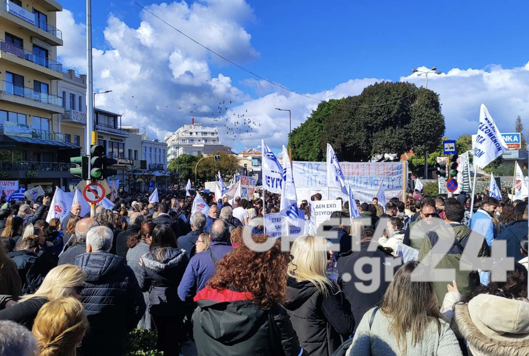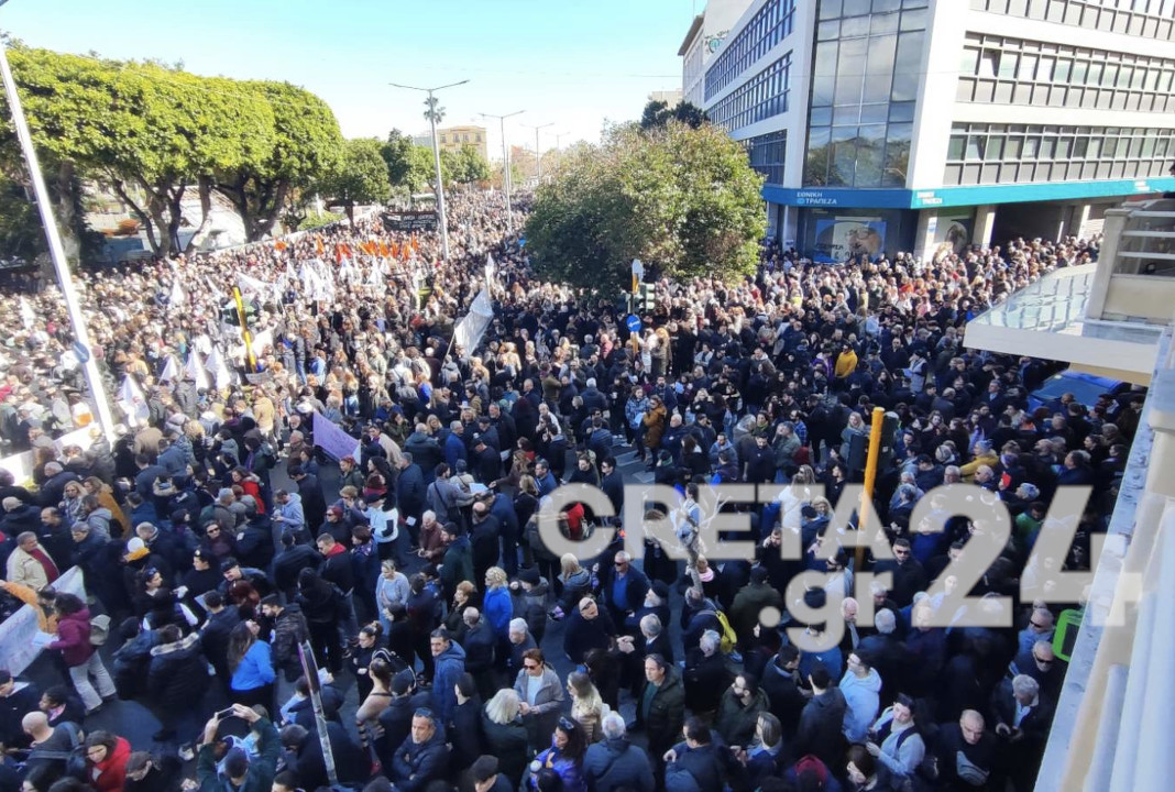Χιλιάδες πολίτες συμμετέχουν στο συλλαλητήριο που πραγματοποιείται στα Χανιά για τα δύο χρόνια από την σιδηροδρομική τραγωδία στα Τέμπη.