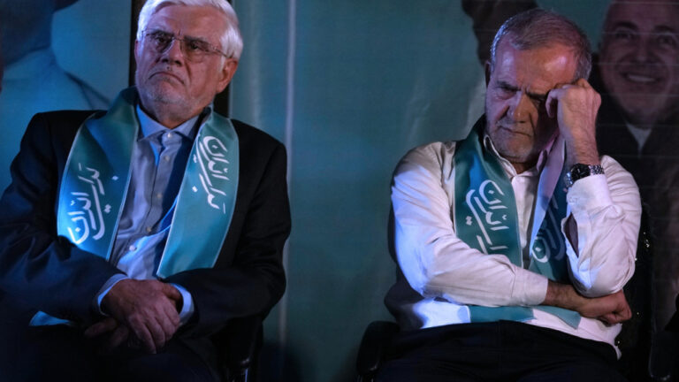 Με εκπροσώπους του «Πρώτα το Ισραήλ» δεν θα υπάρξει συμφωνία, και θα συνεχίσουμε ακόμη πιο δυναμικά με τον κόσμο να αντιμετωπίζει μεγαλύτερο κόστος, προειδοποιεί τις ΗΠΑ ο αντιπρόεδρος του Ιράν Μοχαμάντ Ρεζά Αρέφ (αριστερά στη φωτό με τον πρόεδρο του Ιράν) ενόψει των διαπραγματεύσεων στο Ισλαμαμπάντ.