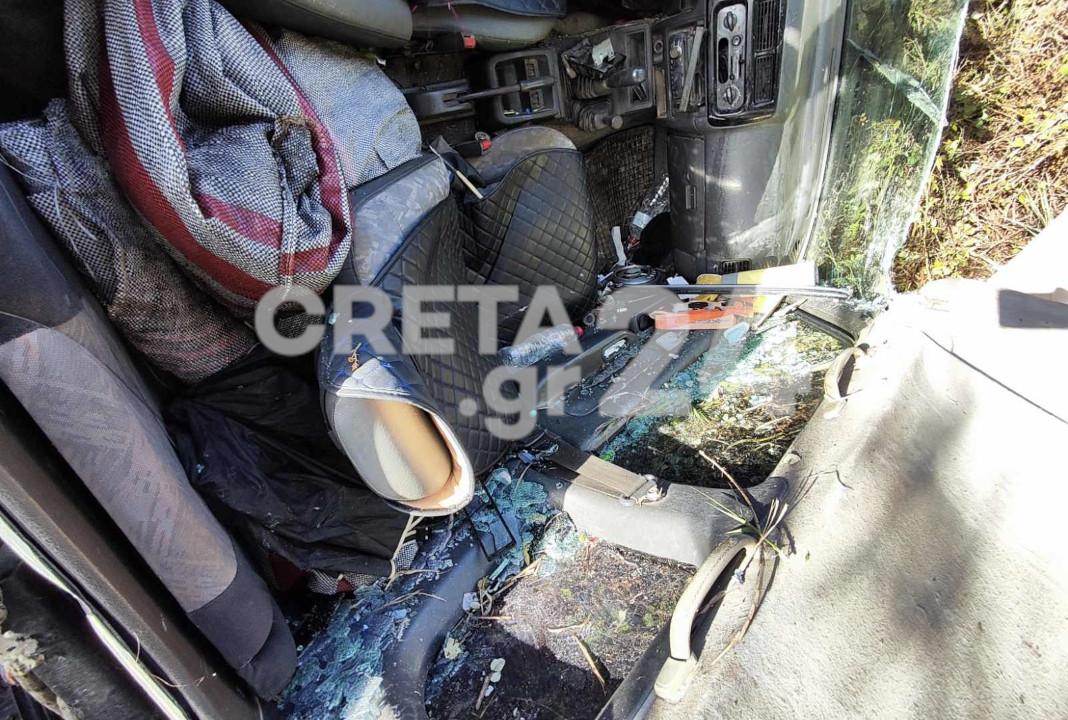 Ο 73χρονος εγκλωβίστηκε στο όχημά του μαζί με την σύζυγό του. Ο Μ. Μακατουνάκης ανασύρθηκε νεκρός από πυροσβέστες που έσπευσαν να τους απεγκλωβίσουν, ενώ η 71χρονη σύζυγός του τραυματίστηκε σοβαρά και μεταφέρθηκε στο νοσοκομείου, όπου νοσηλεύεται. Ελαφρύτερα τραυματίστηκε το ζευγάρι που επέβαινε στην κλούβα.