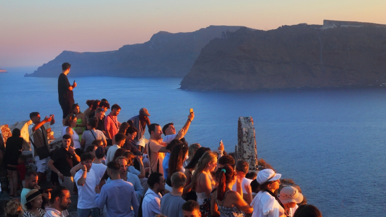 Η Σαντορίνη έχει 25.000 κατοίκους, αλλά κάθε χρόνο κατακλύζεται από 3,4 εκατομμύρια τουρίστες, γεγονός που έχει συμβάλει στην περιβαλλοντική καταστροφή και την έλλειψη νερού.