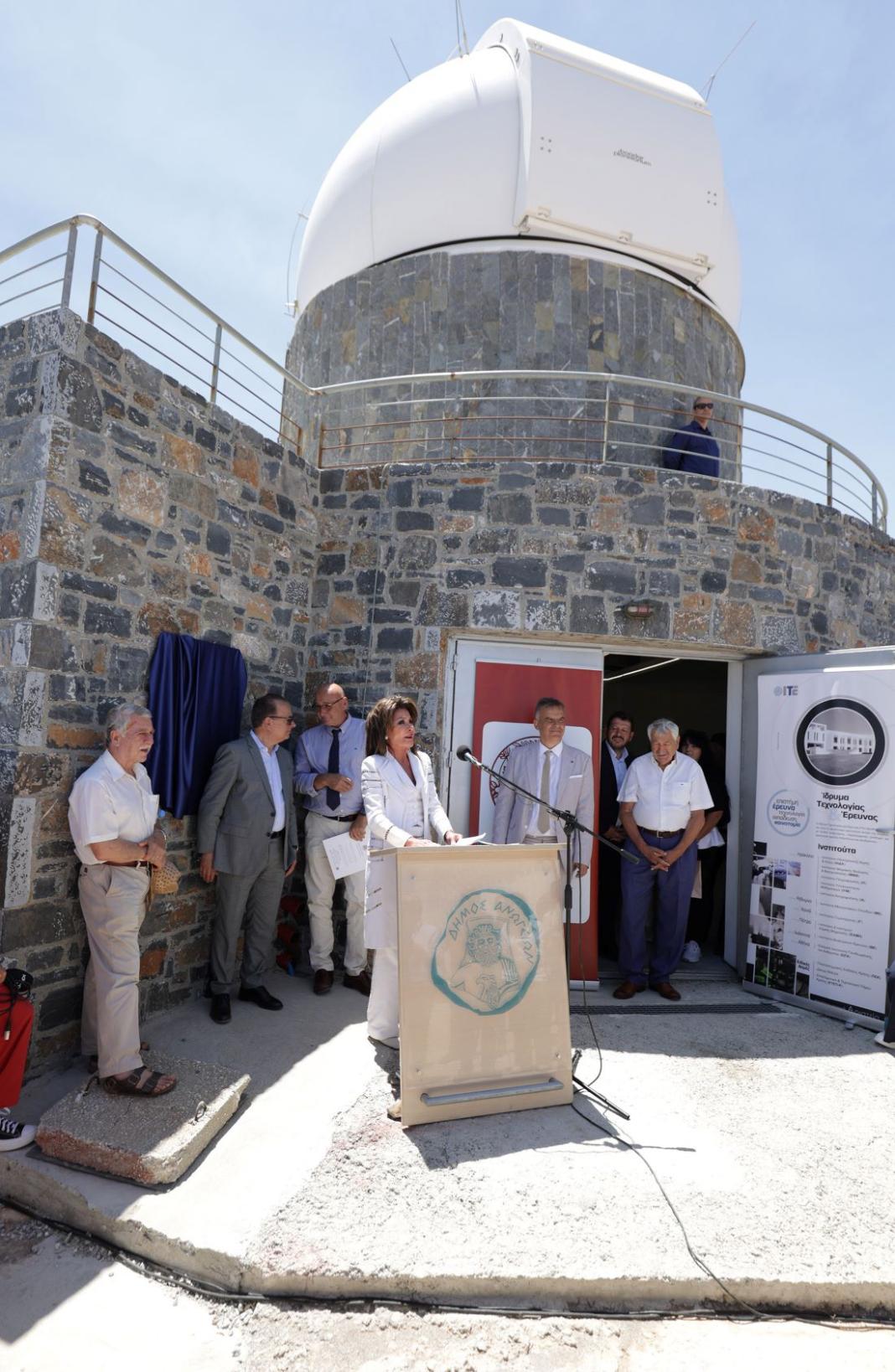 Ο Περιφερειάρχης Κρήτης, κ. Σταύρος Αρναουτάκης, δήλωσε ότι η προσφορά της Επιτροπής, με την εγκατάσταση ενός υπερσύγχρονου τηλεσκοπίου στο Αστεροσκοπείο, συνεισφέρει στην ενίσχυση του οικοσυστήματος της καινοτομίας στην Κρήτη, ενός περιφερειακού μηχανισμού έρευνας και ανάπτυξης, που ενισχύει ουσιαστικά την τοπική οικονομία και κοινωνία. Επίσης, ευχαρίστησε την κα Αγγελοπούλου για την πολυεπίπεδη υποστήριξή της στην Κρήτη και την ανιδιοτελή προσφορά της.