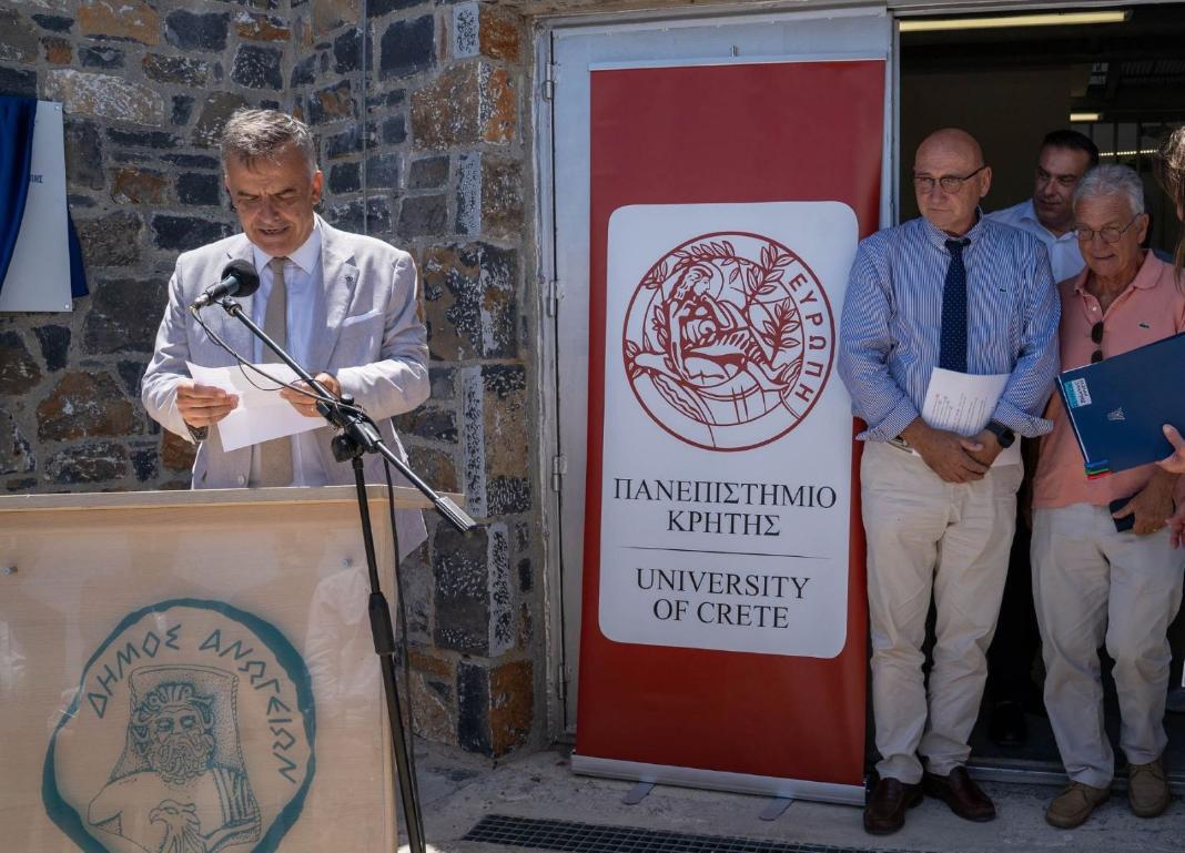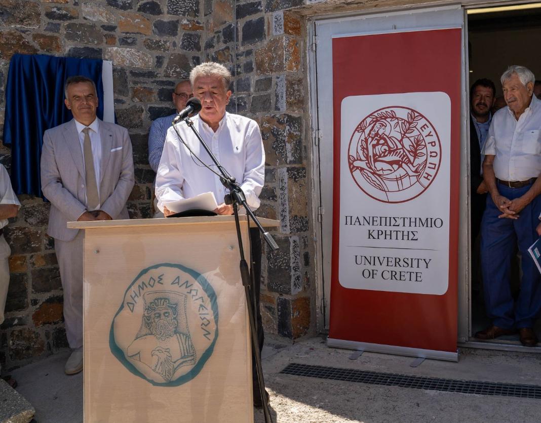 Ο Πρόεδρος του ΙΤΕ, καθηγητής του Πανεπιστημίου Κρήτης, Βασίλης Χαρμανδάρης, καλωσόρισε τους προσκεκλημένους και αναφέρθηκε στην ξεχωριστή σημασία που έχει η κορυφή του Σκίνακα και το Αστεροσκοπείο, για την Πολιτεία, για τους αστροφυσικούς, και για τους κατοίκους, για διαφορετικούς λόγους, που όμως οδήγησαν την Επιτροπή στην απόφαση της σημαντικής αυτής επένδυσης.