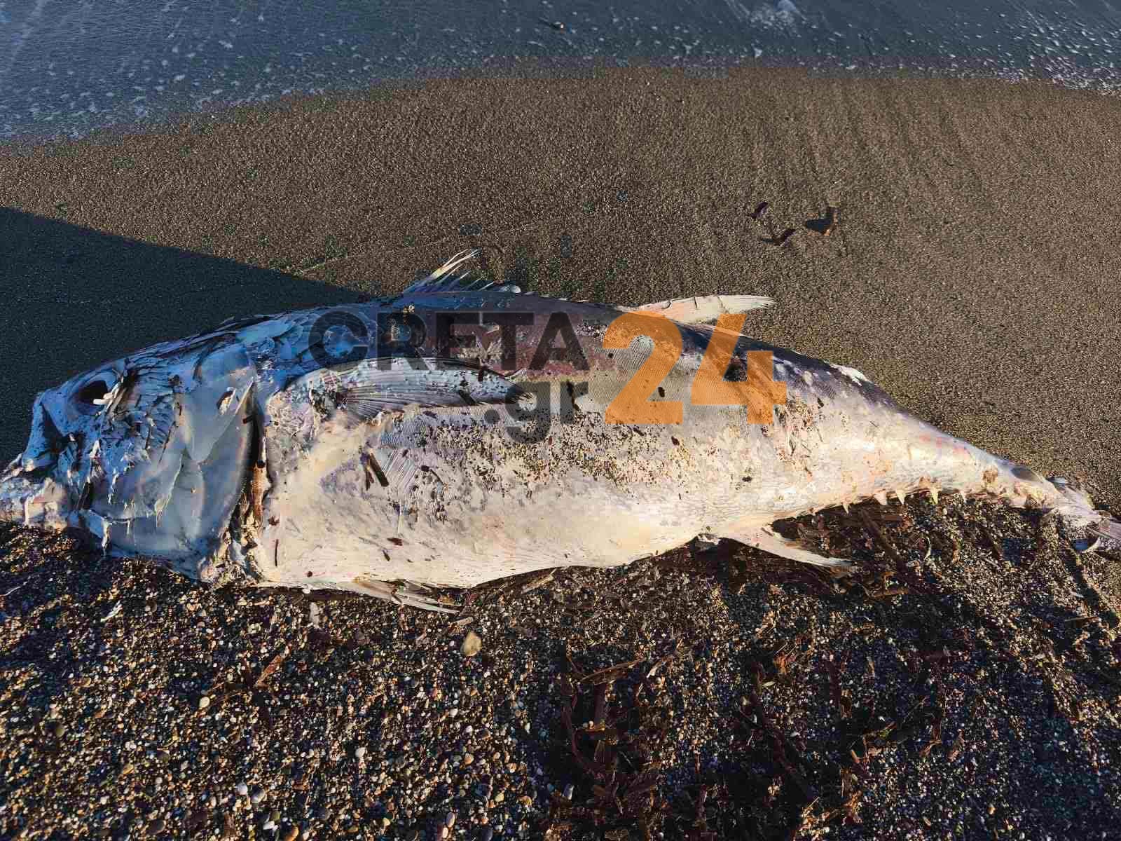 Ένα μεγάλο ψάρι πολλών κιλών – πιθανότατα τόνος – ξεβράστηκε νωρίς σήμερα (Πέμπτη) το πρωί στην περιοχή της Αμμουδάρας, στο Ηράκλειο, σημαίνοντας συναγερμό και προκαλώντας ανησυχία.