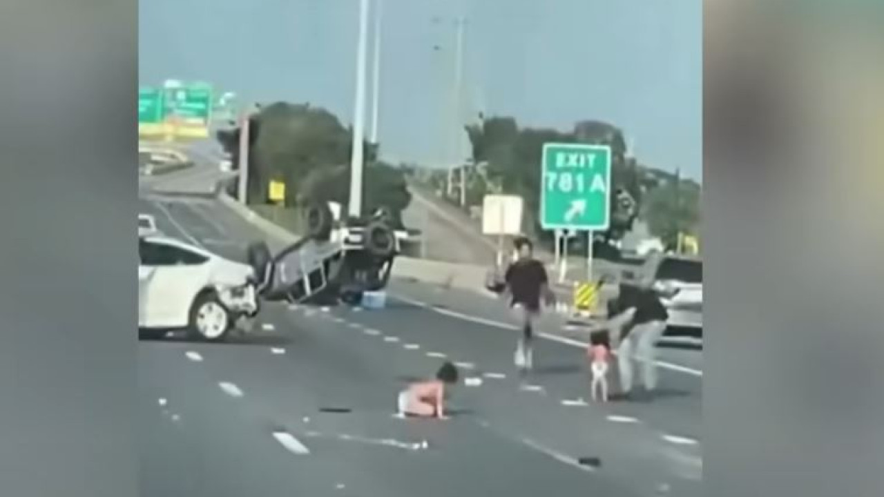 Το βίντεο μετά το τροχαίο δείχνει τα δύο παιδιά, που φορούσαν μόνο τις πάνες τους, να κάθονται στη μέση του αυτοκινητόδρομου και τον πατέρα τους και έναν άλλο άνδρα να τρέχουν προς το μέρος τους.
