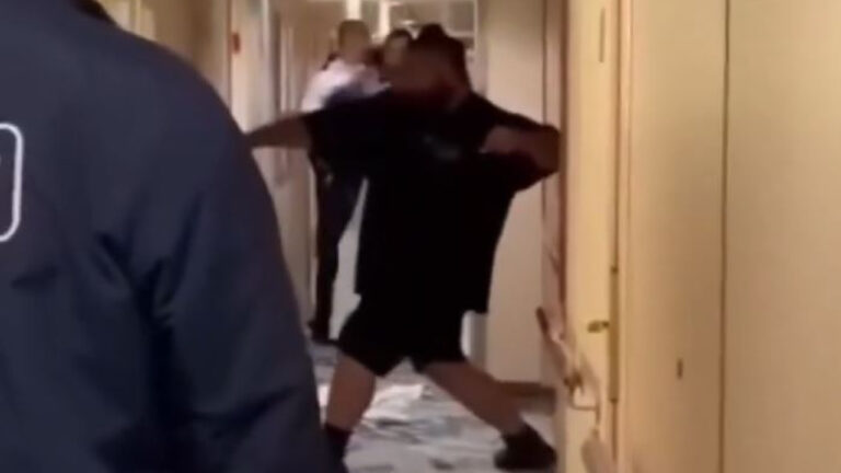 Βίντεο έχει καταγράψει τον 35χρονο να χτυπάει τις πόρτες, να κλωτσάει και να φωνάζει μεθυσμένος στον διάδρομο, ενώ το πλήρωμα και οι ασφάλεια του πλοίου προσπαθούν να τον ηρεμήσουν.