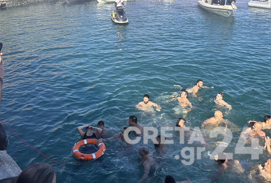 Δεκάδες κολυμβητές έπεσαν στα νερά του λιμανιού για να πιάσουν τον σταυρό.