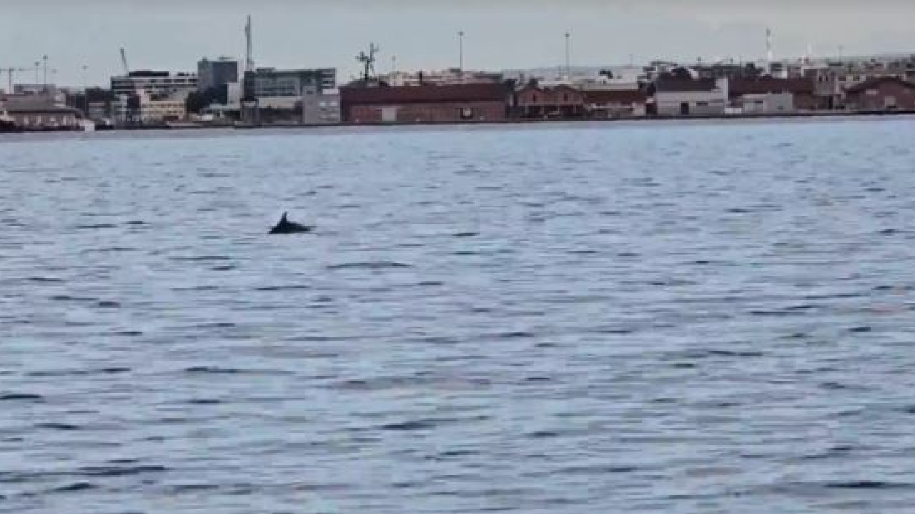 Δελφίνια έκαναν την εμφάνιση τους στον Θερμαϊκό κόλπο το πρωί της Παρασκευής 19 Απριλίου, κοντά στις ομπρέλες.