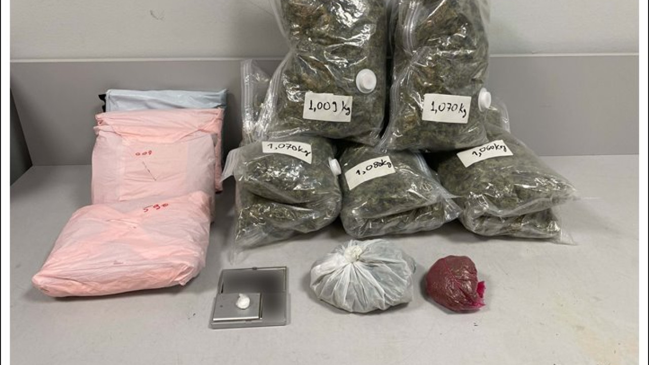 Σε έρευνες που διενεργήθηκαν στις οικίες τους, παρουσία δικαστικού λειτουργού, βρέθηκαν συνολικά και κατασχέθηκαν περισσότερα από 9,5 κιλά ακατέργαστης κάνναβης, τρεις τρίφτες, πλαστικό βάζο με υπολείμματα ναρκωτικής ουσίας, μικροποσότητα κοκαΐνης και ηλεκτρονική ζυγαριά ακριβείας.