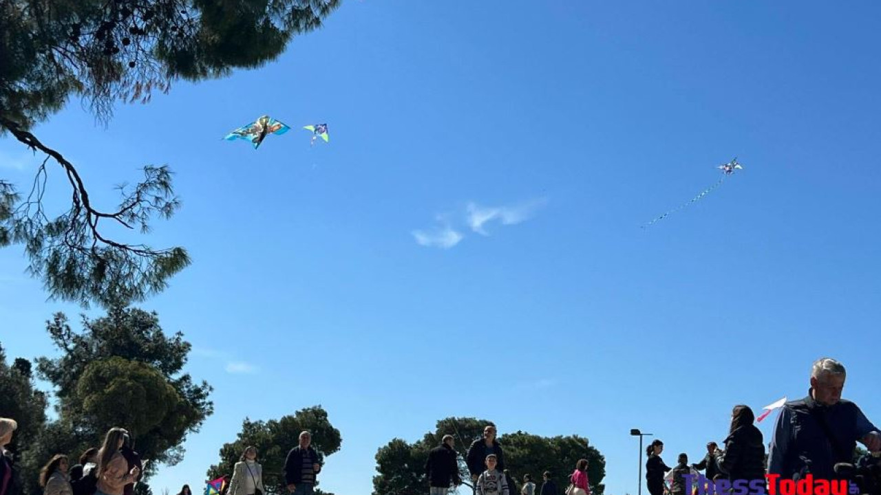 Μικροί και μεγάλοι πετάνε τους χαρταετούς στην πλατεία Τσιάρτα, ενώ λίγο παραδίπλα έχει στηθεί ο πάγκος με τα σαρακοστιανά, που έχει γεμίσει από ουρές πολιτών.