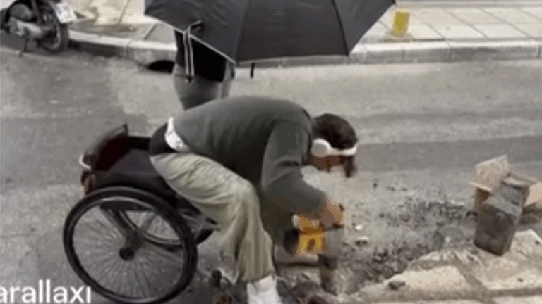 Στο κέντρο της Θεσσαλονίκης, ανήμερα της Παγκόσμιας Ημέρας Αναπηρίας, ο Κωνσταντίνος Τσιφτσόπουλος, νεαρός ΑμεΑ που μετακινείται με αναπηρικό αμαξίδιο, αποφάσισε να δημιουργήσει μόνος του μια ράμπα διέλευσης στη διασταύρωση των οδών Βενιζέλου και Παπαδοπούλου.