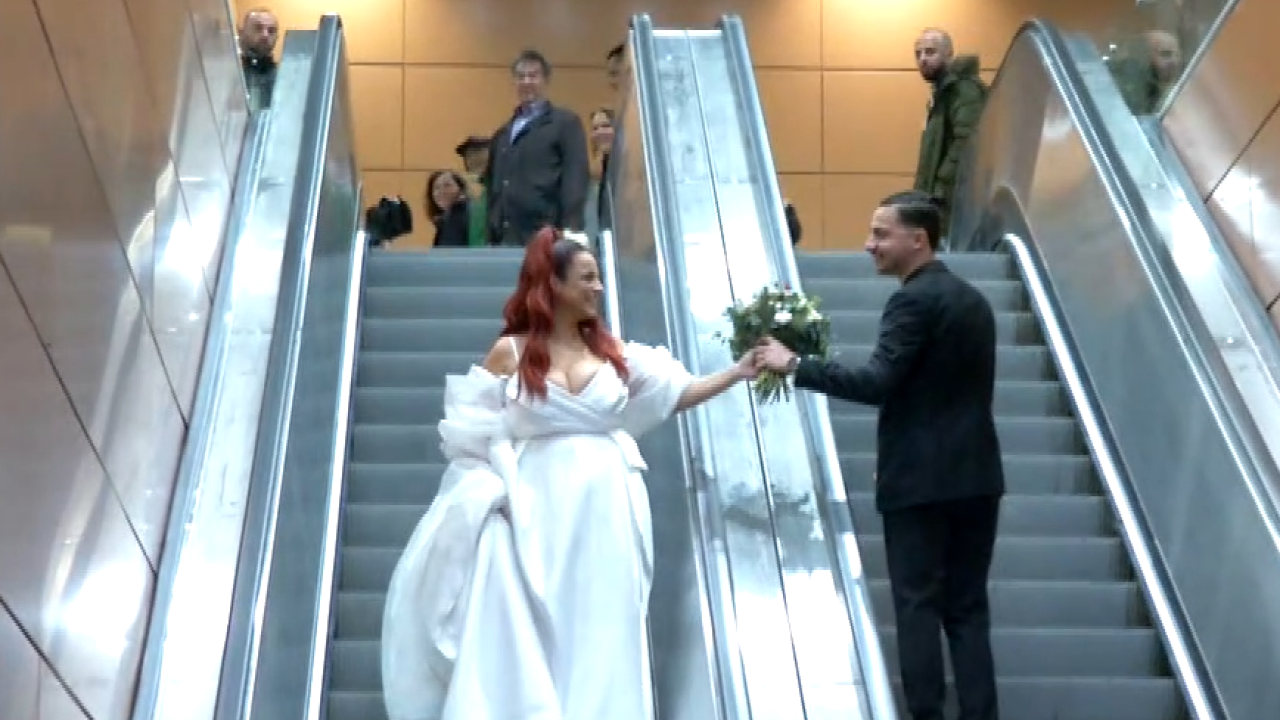 Το ζευγάρι, αμέσως μετά την εκκλησία, επισκέφθηκε σταθμό του μετρό, με τον γαμπρό να τηρεί την υπόσχεσή που είχε δώσει.