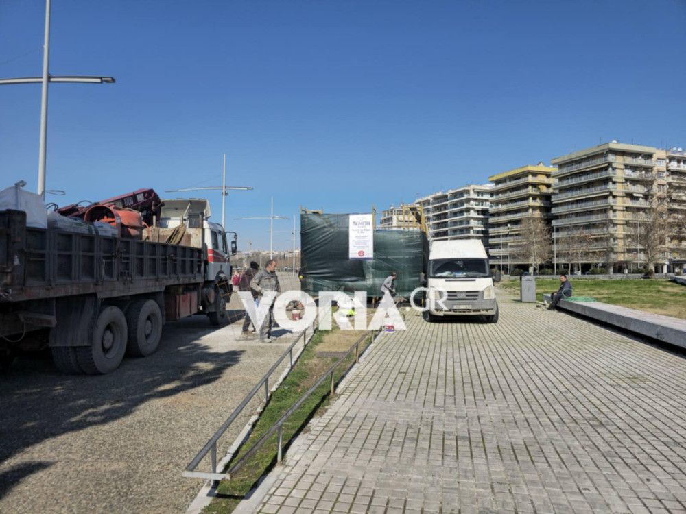 Άρχισαν οι εργασίες τοποθέτησης, από σήμερα το πρωί, στη Νέα Παραλία, στη Θεσσαλονίκη, για το μνημείο που είναι αφιερωμένο στα 57 θύματα από την τραγωδία στα Τέμπη.