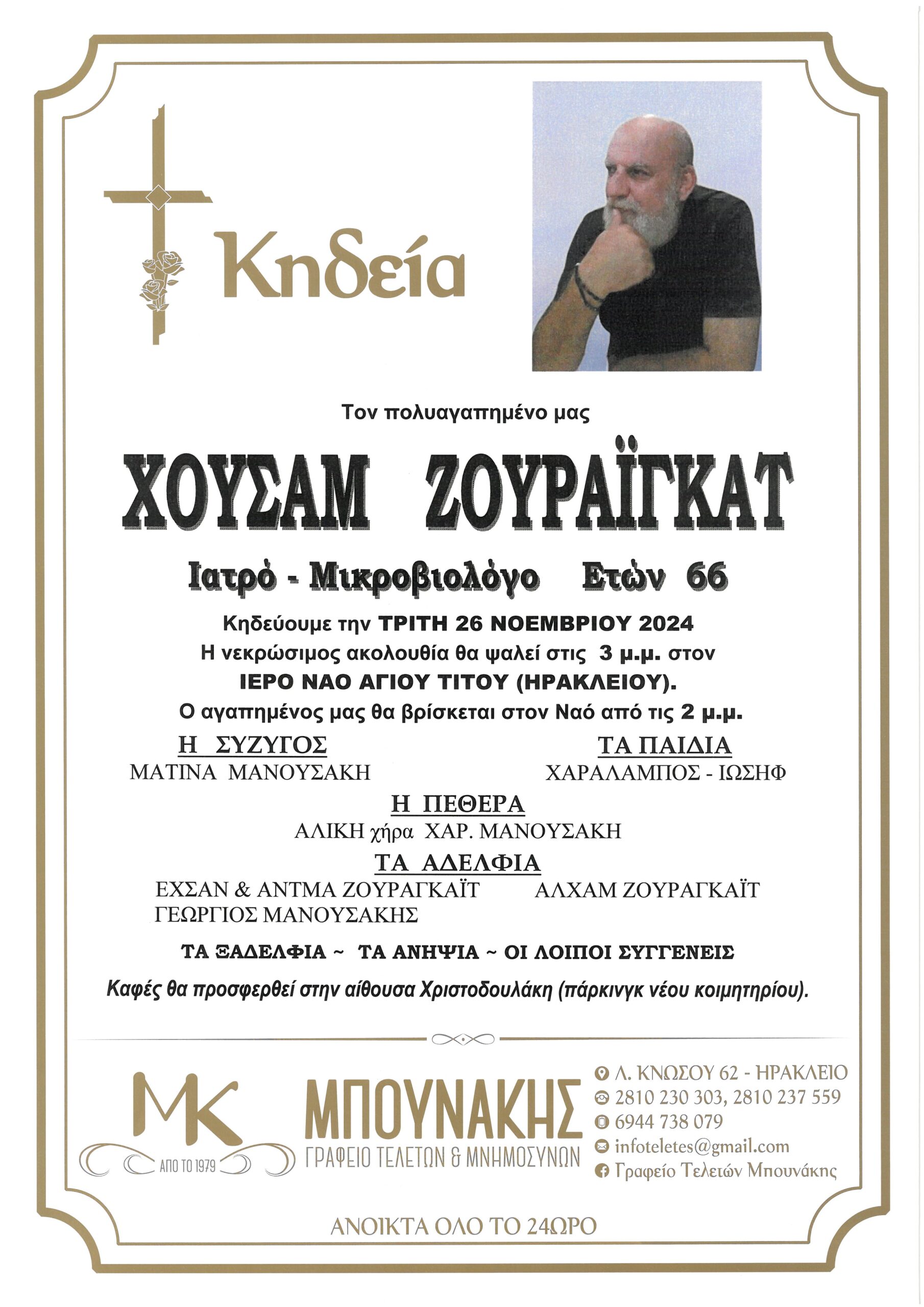 Θλίψη σκόρπισε στο Ηράκλειο ο θάνατος του γνωστού μικροβιολόγου Χουσάμ Ζουραϊγκάτ.