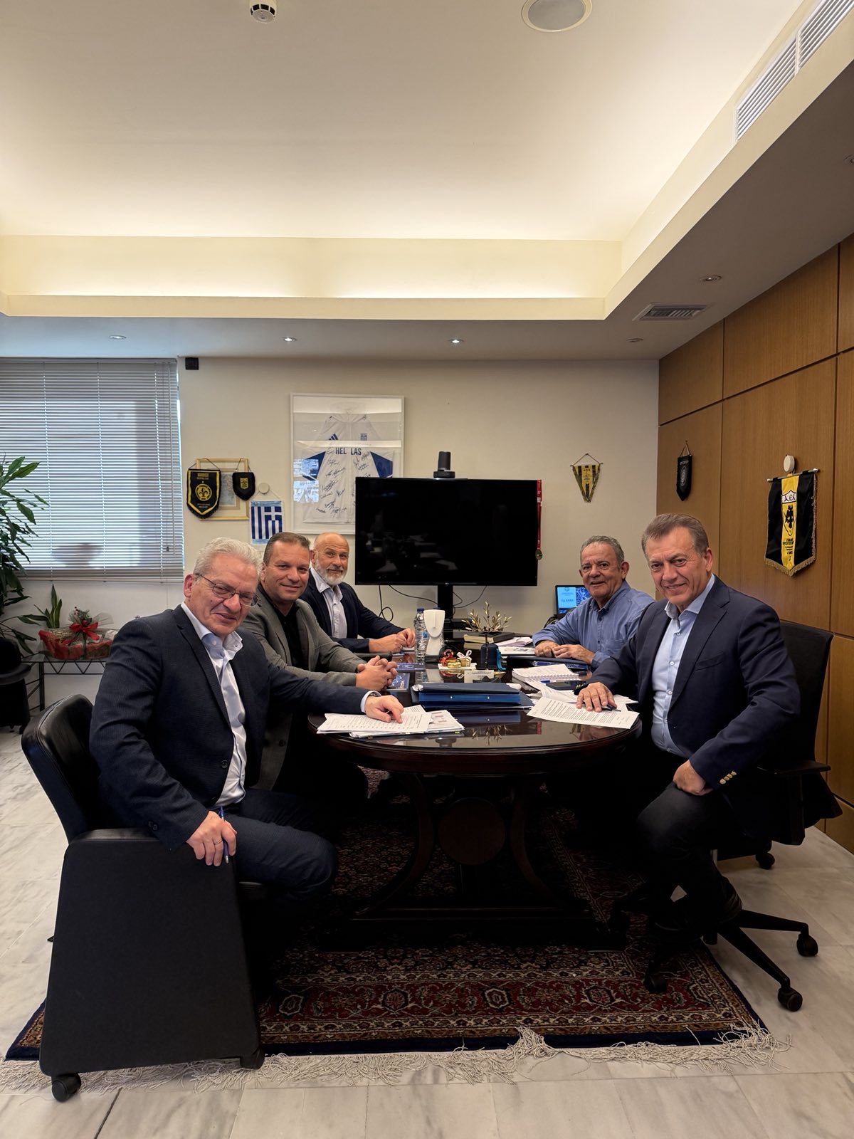 “Σε εγκάρδιο κλίμα και με εμφανή τη διάθεση συνεργασίας, ολοκληρώθηκε το απόγευμα της Πέμπτης 11/12 στην Αθήνα η συνάντηση του Δημάρχου Ηρακλείου Αλέξη Καλοκαιρινού με τον Αναπληρωτή Υπουργό Αθλητισμού Γιάννη Βρούτση, με συμμετοχή και των Αντιδημάρχων, Άθλησης & Αθλητισμού Γιάννη Τσαπάκη και Προγραμματισμού & Ψηφιακού Μετασχηματισμού Τάσου Τσατσάκη και του Διευθυντή του γραφείου του Αναπληρωτή Υπουργού, Δημήτρη Κοντού.