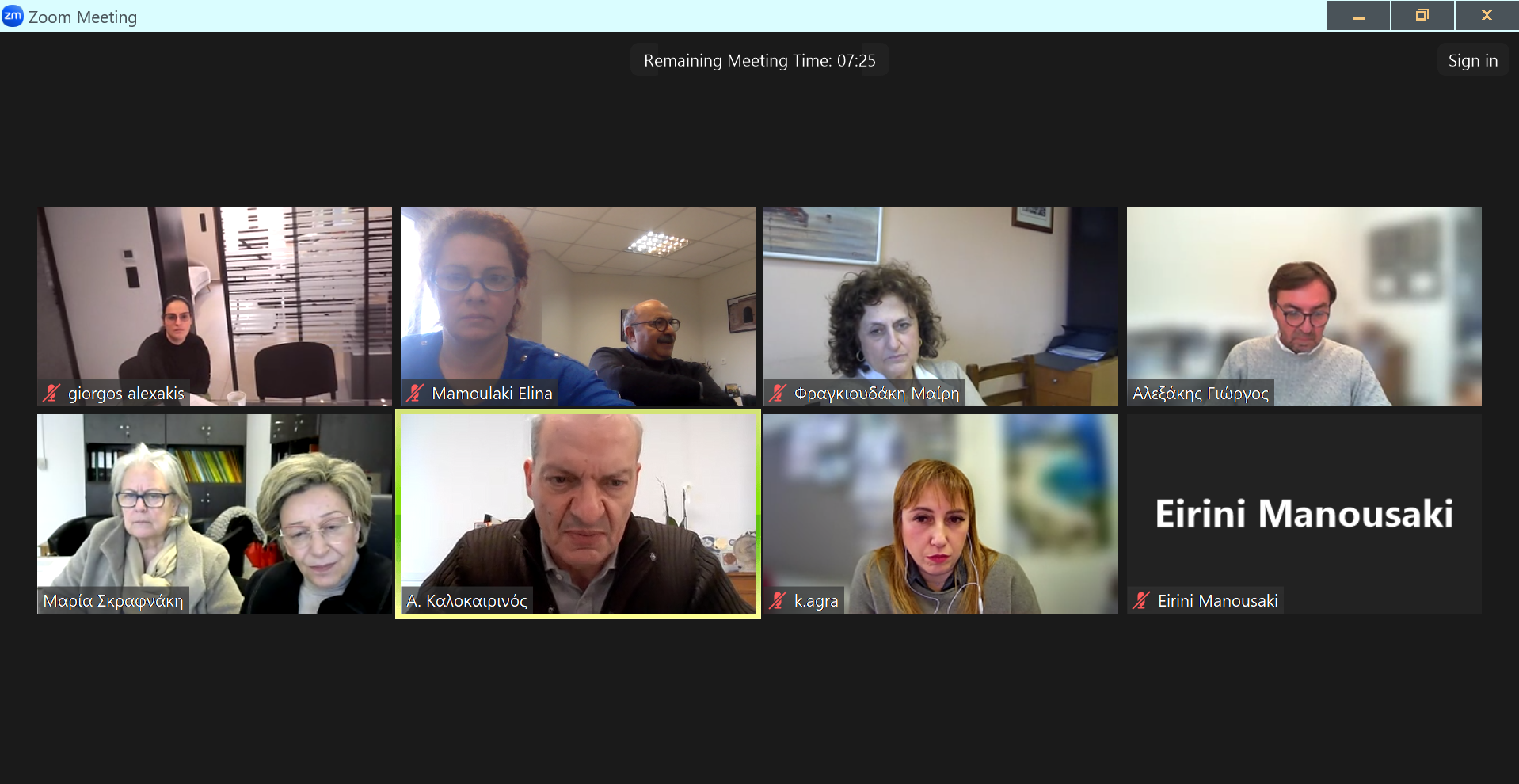 Στη τηλεδιάσκεψη, που πραγματοποιήθηκε το μεσημέρι της Πέμπτης 1/2/24, συμμετείχαν επίσης, η Γενική Γραμματέας του Δήμου Μαρία Σκραφνάκη, η Δ/ντρια της Πολεοδομίας Μαίρη Φραγκιουδάκη, η Πρόεδρος Ελίνα Μαμουλάκη και τα μέλη της Επιτροπής Παρακολούθησης Κωνσταντινιά Αγκρά και Ειρήνη Μανουσάκη, ο εκπρόσωπος των μελετητών Γιώργος Αλεξάκης και στελέχη της Δ/νσης Πολεοδομίας του Δήμου Ηρακλείου.
