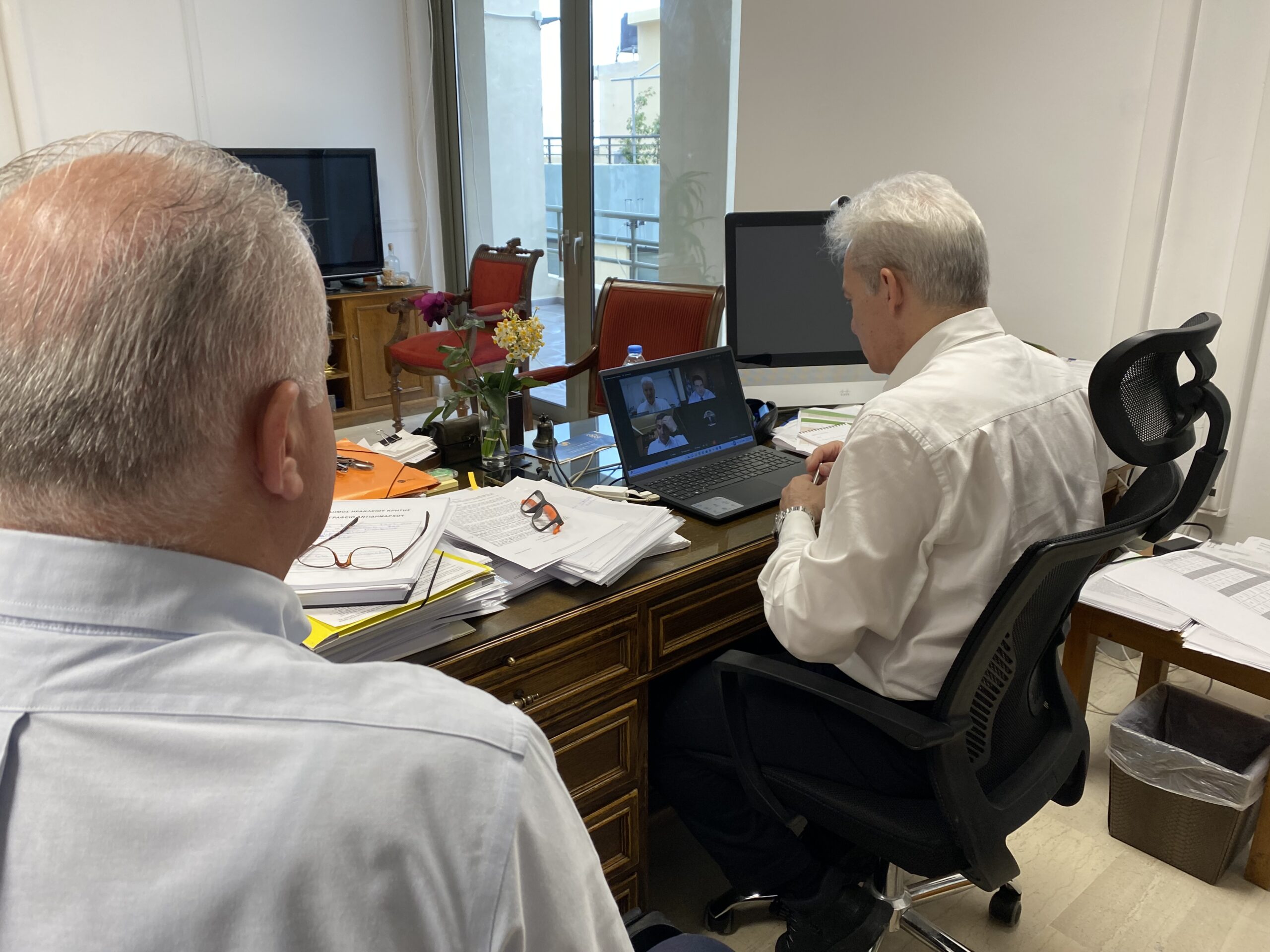 Τηλεδιάσκεψη εργασίας μεταξύ του Δημάρχου Ηρακλείου Αλέξη Καλοκαιρινού και του Αντιδημάρχου Οικονομικών & Ανάπτυξης της Τοπικής Οικονομίας Γιώργου Αγριμανάκη με τον Υπουργό Αγροτικής Ανάπτυξης & Τροφίμων Λευτέρη Αυγενάκη και τον Αναπληρωτή Υπουργό Εσωτερικών Θόδωρο Λιβάνιο, πραγματοποιήθηκε το πρωί της Τετάρτης 10/1/2024.