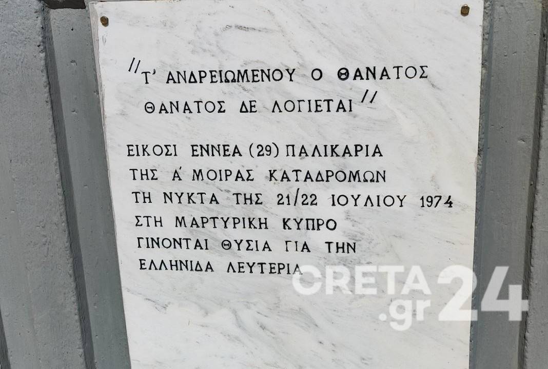 Το άρθρο “Τίμησαν στην 1η ΜΑΛ τη μνήμη των πεσόντων στην Κύπρο το 1974“, δημοσιεύθηκε για πρώτη φορά στο CRETA24.