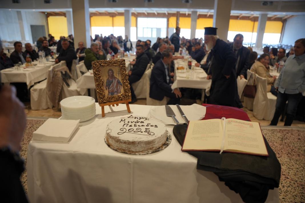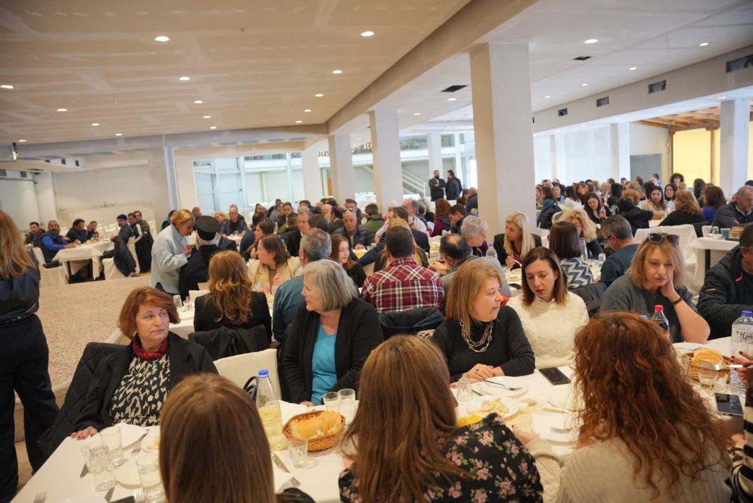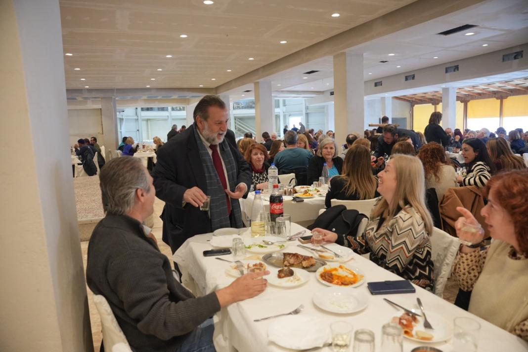 Ο Δήμαρχος πέρασε από όλα τα τραπέζια, ανταλλάσσοντας ευχές με τον καθένα και την καθεμία χωριστά ενώ η κοπή της πίτας συνοδεύτηκε από φαγητό, κρασί, ωραίες παρέες και χορό!